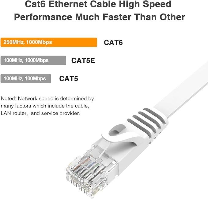 Matériau et performance : Bande passante : 250 MHz. 32 AWG OFC (cuivre sans oxygène). Câble réseau UTP (paire torsadée non blindée) avec connecteurs RJ45 plaqués or et fil de cuivre nu 100 % pour augmenter les performances Internet et réduire le taux de ping. Câble cordon LAN réseau Ethernet RJ45 UTP Cat6 3m - Informatique Caractéristiques : - Type de câble : CAT6 4 paires UTP - Matériau du conducteur : 100 % cuivre nu, gaine en PVC, gaine 100 % polyéthylène haute densité. Par rapport aux câbles de catégorie 5/5e d'une bande passante de 100 MHz. LAN Câble Cat 6 Ligne De Cordon De Câble De Raccordement Lan De Réseau... 6/Cat-6a, conforme RoHS. Contenu : 1 câble blanc Cat6 de 19,8 m., 20 clips de câble., 2 sangles Velcro. Haute vitesse de transmission grâce à la fréquence de fonctionnement jusqu'à 250 MHz. Le câble LAN RJ45 prend en charge tous les appareils avec prises RJ45, tels que PC/ordinateur/ordinateur portable/ordinateur portable/console de jeu/modem DSL/commutateur/routeur et plus encore. Le câble de raccordement plat est fin et s'adapte parfaitement sous le tapis, pas besoin de passer à travers l'espace de la porte, livré avec des clips de câble et des sangles Velcro pour éviter les cordons emmêlés et économiser de l'espace Ethernet Cat 8 Cable De Red Lovicool Ethernet Rj45 Cat6, 75 Pies/lan/10gb Cable Rj45 Vitesse plus élevée, plus fiable.