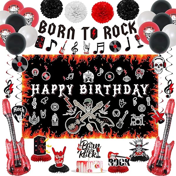Spécifications du produit ; Matériau, Paper ; Composants inclus, Birthday Banner, Swirls, Honeycomb Centerpiece ; Marque, LARRAZABAL ; Thème, Rock and Roll -Utilisations multiples - peut être utilisé comme arrière-plan ou accessoire photo pour décorer les murs, les salons, les chambres, les tables de desserts, les jardins et tout endroit que vous aimez. Un forfait économique pour répondre aux besoins de votre fête et rendre votre fête vraiment active et impressionnante. Modèle De Flyer Psd Pour La Fête De La Musique Rock And Roll | PSD Premium Guitare Gonflable Rock Adulte Born To Rock Guirlande De Bannière à Paillettes – Tête De Décoration Salle Rock And Roll Application - Ces décorations sont parfaites pour les soirées rock and roll, les soirées des années 50, les soirées musicales, les fêtes d'anniversaire des années 1950, les soirées disco. Convient comme un bon accessoire pour la photographie, l'arrière-plan, la décoration de salle et de fête Ils peuvent apporter du plaisir à votre fête. C'est un choix idéal pour les soirées rock. Bon matériau : les fournitures de fête pour la musique rock des années 1950 sont faites de cartes rigides de haute qualité, inodores, clairement imprimées, difficiles à décolorer, non toxiques, robustes et réutilisables. Born to Rock Designs : les ensembles de soirées à thème de musique rock sont composés de motifs graphiques rock, tels que des disques, des disques, des microphones, des gestes rock, des guitares, des notes de musique, etc. Pleins d' de fête musicale, ils dynam ront votre fête et laisseront vos familles profitent de la soirée à thème rock L'ensemble de décoration de fête de musique rock noir et rouge contient 1 bannière de lettres Born to Rock, 1 bannière de banderole suspendue sur le thème de la musique, 12 banderoles en spirale.