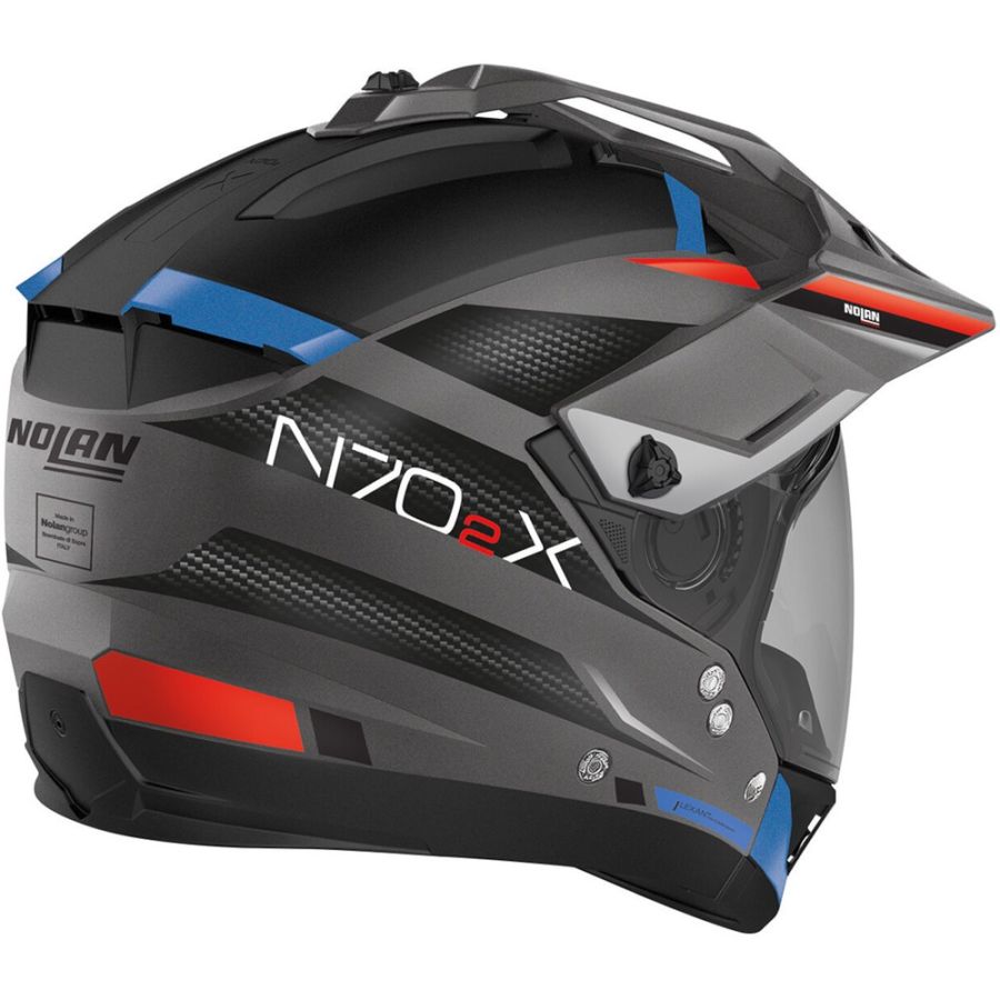 CASCO NOLAN N70-2 X BUNGEE N-COM 036 L , ECE 22-06 CERTIFIED Nolan N70-2 X Torpedo - Casco modular de motocicleta grisnegro, XL 2 tailles de calotte disponibles offrant un volume compact. Livré avec un écran clair traité anti-rayures offrant un large champ de vision. Écran solaire interne traité anti-rayures et anti-buée. Système de ventilation Air BOOSTER Technology. Intérieur respirant et amovible en tissu Clima Comfort. Mentonnière amovible. 8 configurations possibles Nolan CASCO N70-2 X BUNGEE N-COM 036 L C’est le premier casque on-off muni d’une mentonnière de protection amovible disponible sur le marché.