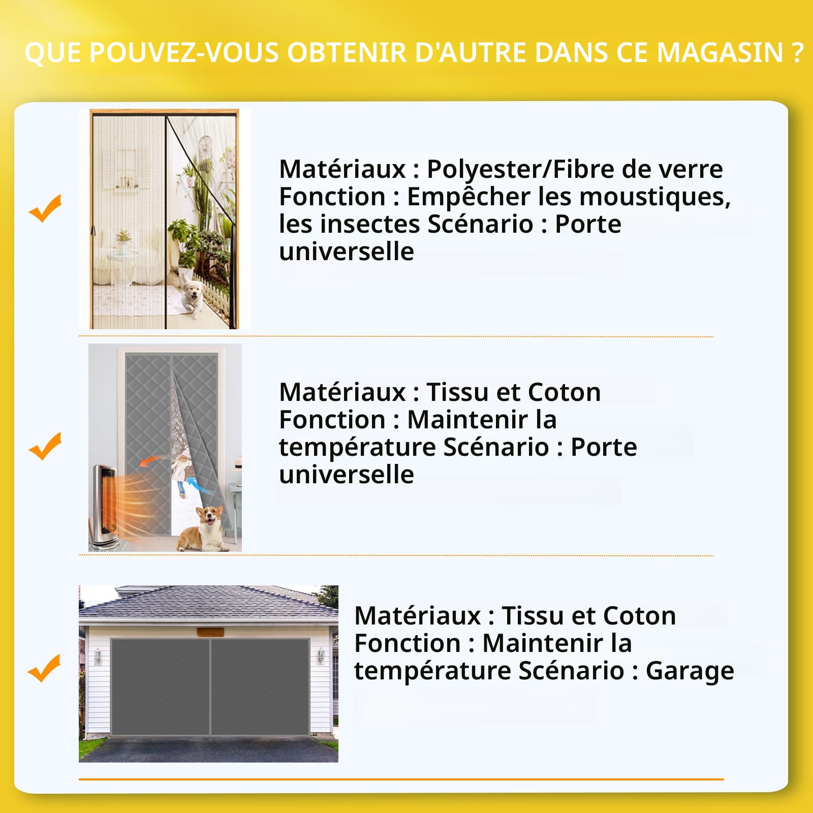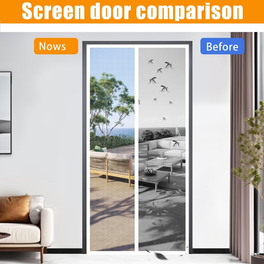 Cette moustiquaire pour porte peut être utilisée comme remplacement pour une porte moustiquaire fixe qui s'adapte à la terrasse, à l'entrée, au patio, au porche, au balcon, au verre, au garage et même aux portes coulissantes. Porte moustiquaire magnétique robuste en maille pour terrasse Dimensions réelles de la porte moustiquaire : 91,4 x 213,4 cm. Convient pour terrasse, entrée, patio, porche, balcon, verre, garage, et même les portes... Bien que forts et puissants, ils permettent toujours aux enfants de passer. La porte moustiquaire est très simple, rapide et rapide à installer. Contrairement à d'autres portes moustiquaire magnétiques bon marché, cette porte moustiquaire Iduontis fonctionne sur toute la longueur de l'écran. Ouverture et fermeture faciles : la couture centrale de la moustiquaire magnétique permet à la porte de s'ouvrir et de se fermer facilement et sans problème La porte moustiquaire pliable est également rétractable, sans cadre, amovible et peut être enroulée pour un rangement temporaire lorsque vous voulez la retirer. Installation rapide et facile : l'installation de notre porte moustiquaire magnétique rapide ne pourrait pas être plus facile ou plus facile. Convient aux portes de 86,4 x 208,3 cm : lors de l'alternance de l'ancien et du nouvel emballage, l'étiquette de taille 86,4 x 208,3 cm sur le tissu intérieur de la porte moustiquaire magnétique signifie qu'elle est adaptée pour les portes de 86,4 x 208,3 cm. Le tissu en maille de polyester est assez durable pour résister à des milliers d'utilisations. Bord de porte moustiquaire robuste : la porte moustiquaire a un bord large avec double couture pour plus de stabilité et de durabilité. Le cadre est également résistant aux rayures et aux déchirures Magic Mesh Porte Moustiquaire Porte Moustiquaire Magnétique – Convient Pour Porte De 96,5 X 208,3 Cm, Taille De L Porte Moustiquaire Sans Main Languettes Velcro incluses pour une installation rapide et facile.