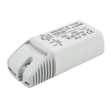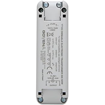 load 40W) Input Voltage: 230V +/-10%; 50Hz Input current:0., 45A for 105W Output Voltage: 11., 5V AC max 9., 5A Power factor: 0., 99 Ambient Temperature Range: 0-40degrees Insulation Class: II Class:IPX 7 Quantity of Input Terminals: 2 br Quantity of Output Terminals: 4 Weight: 120g Dimensions HxWxL (mm): 29., 5x36., 5x118mm Fully reversible Short circuit Thermal and overload protection Protection for complete lamp fuailer Soft start for extended lamp life Ultra cool running Compact size Recommended for Low Voltage Halogen (12VAC) and 12VAC LED Lights. dimmable by leading and trailing edge dimmers suitable for 12Vac LV-halogen and 12Vac LED lights , Start at 0W! Transformador eletrônico 105w com forma 6 AMP - China Balastro, Luminárias 0W - 105W Dimmable Electronic Transformer YT105 for low voltage halogen (MR16, MR11, G4) and 12Vac LED lights; Transformateur Electronique pour ampoules... Dimmer Led 0W - 105W Dimmable Electronic Transformer YT105 For Low Transformateur 220v 12v Led to drive and dim 12Vdc LED tapes or 12Vdc LED lights, use additional converter 12V AC/DC - model KYT50