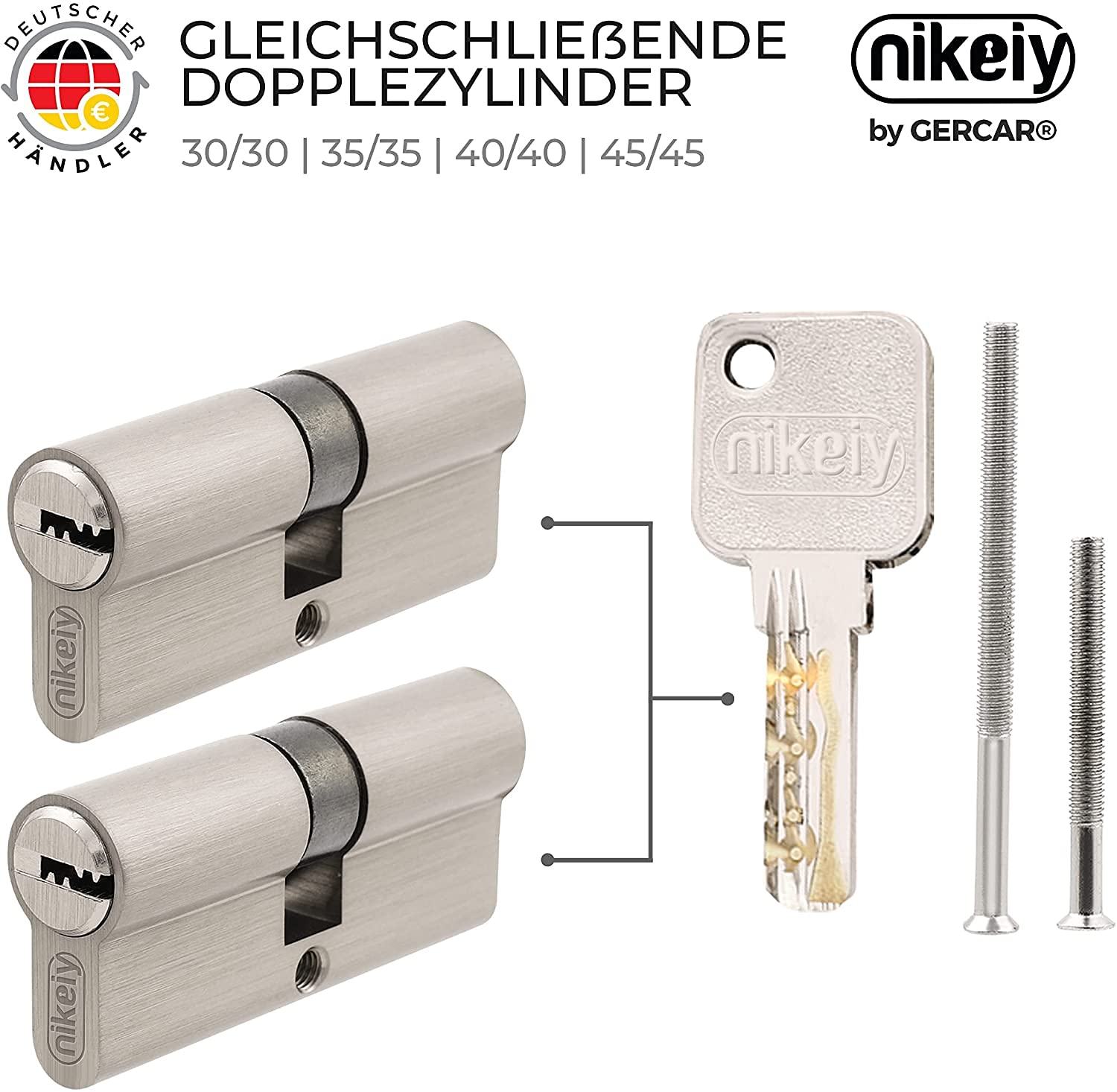Double cylindre profilé avec carte de sécurité et protection contre la copie grâce à la protection de la marque (pas de protection brevetée) Avec fonction d'urgence et de danger (également verrouillable si une clé est insérée de l'autre côté) Certifié SKG avec protection anti-perçage de qualité supérieure D'autres clés peuvent être commandées en ligne comme clé de rechange... Description du système : système de clé réversible EC660 avec entrée de clé horizontale, 6 éléments à ressort et 4 éléments à broches passives. Surface : nickel-perle Variantes combinables comme fermeture identique : double cylindre EC660, demi-cylindre, cylindre à bouton et cylindre extérieur pour serrures à boîte. Apple Watch Series 9 (GPS, 45MM) - Coque en Alluminium Minuit avec Cylindre Serrure Verrou à Double Entrée 45mm Avec 3 Clés Iseo (City 26) Variure Variée Serrure Porte Avec fonction d'urgence et de danger (également verrouillable si une clé est insérée de l'autre côté) D'autres clés peuvent être commandées en ligne comme clé de rechange Certifié SKG avec protection anti-perçage de qualité supérieure Double cylindre profilé avec carte de sécurité et protection contre la copie grâce à la protection de la marque (pas de protection brevetée) Déterminer la longueur du cylindre : mesurez à partir du centre du trou fileté (vis de fixation) des deux côtés. ABUS EC660 Profile Double Cylinder Length (A/B) 35/45mm (C = 80mm) with 5 Key, with Security Card : : DIY & ToolsSystem description: EC660 reversible key system with horizontal key entry, 6 spring-loaded pin elements and 4 passive pin elements. Features: emergency and danger function as standard (always lockable, even if a key is on the other side). High quality drill protection SKG... Caractéristiques : fonction d'urgence et de danger en série (toujours verrouillable, même si une clé est insérée de l'autre côté).