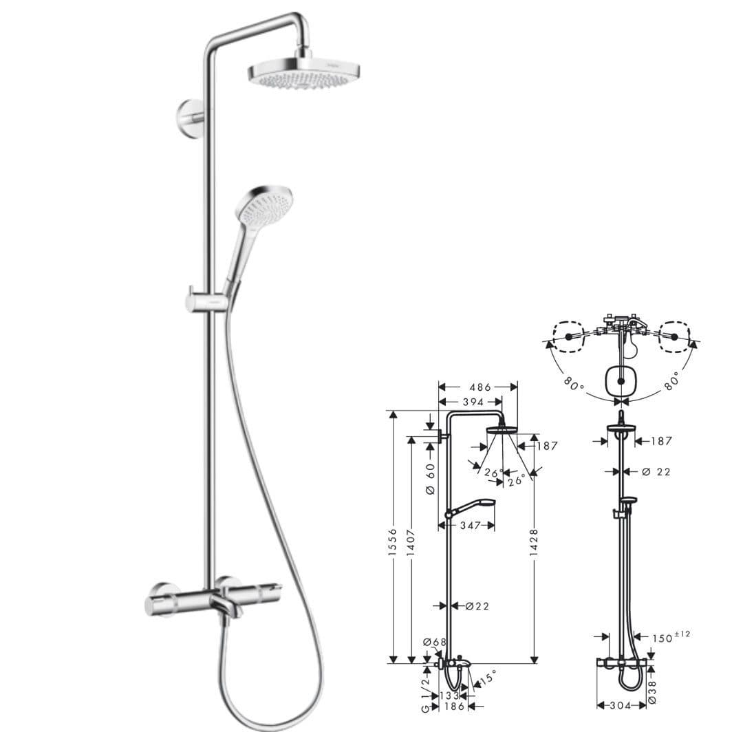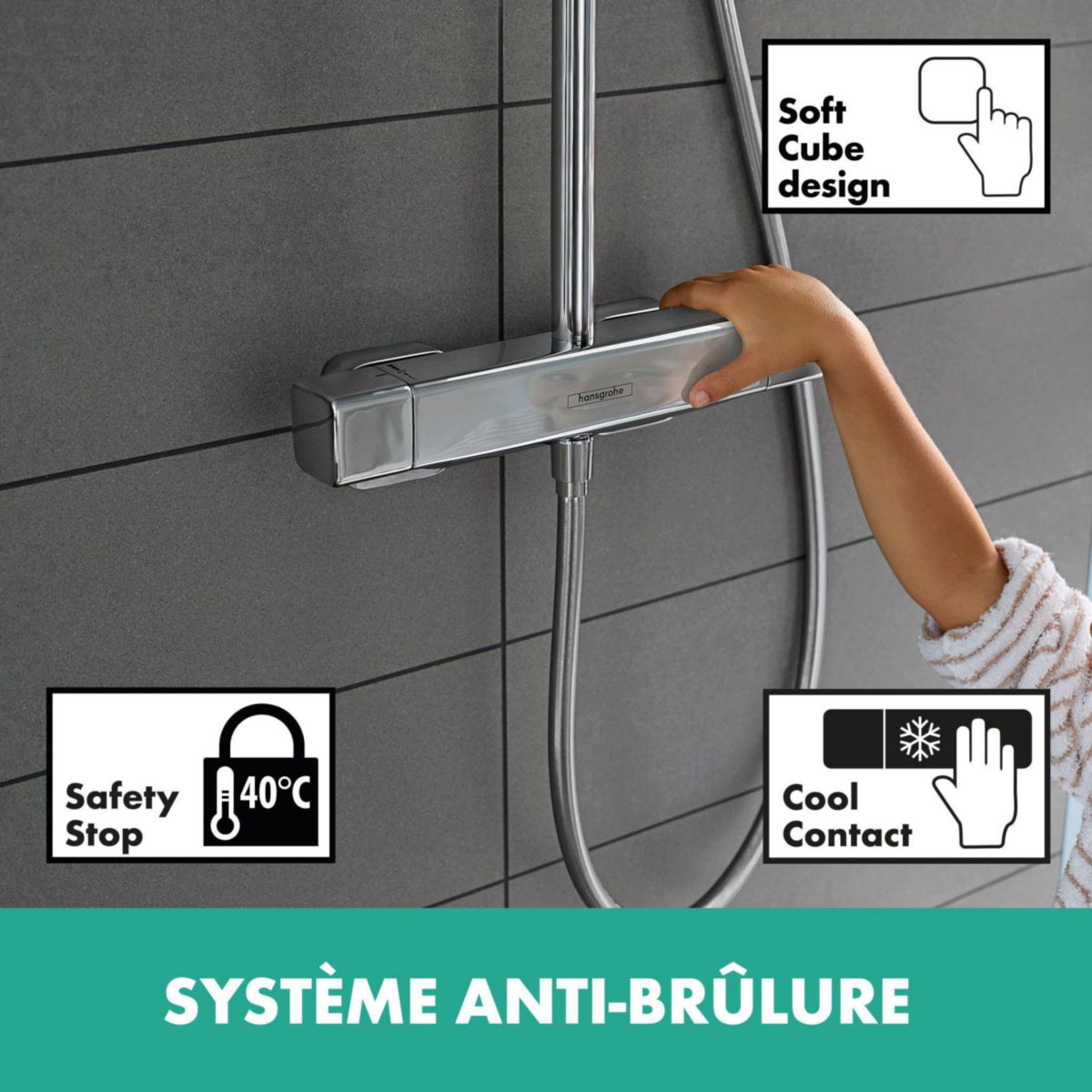 Picots anticalcaires: le calcaire s'élimine d'un simple passage du doigt pour des jets irréprochables et pour longtemps. Garantie totale de 5 ans par le fabricant Hansgrohe Croma Select S - Set de douche Showerpipe 280 avec thermostat... Autres informations : Finition chrome de très haute qualité pour une brillance durable (ne craquelle pas avec le temps). Espace Aubade, le spécialiste de la salle de bains, du carrelage, du chauffage et de la climatisation Colonne de douche orientable horizontalement sur 150°. Entretien facile grâce à son système anticalcaire: il est éliminé en passant simplement le doigt sur les picots - les jets restent irréprochables et pour longtemps. La poignée de droite permet de sélectionner la température. Finition : blanc/chromé comprenant : douche de tête, douchette, thermostatique de douche, flexible de douche, curseur douche de tête Croma Select E 180 2jet diamètre: 180 mm x 180 mm douche de tête orientable jet Rain, jet IntenseRain changement de jet via le bouton Select débit du jet IntenseRain (sous 3 bars de pression): 16 l/min débit du jet Rain (sous 3 bars de pression): 16 l/min longueur du bras de douche: 400 mm bras de douche pivotant thermostatique Ecostat Comfort butée de confort à 40° C limiteur d’eau chaude réglable entraxe 150 mm ± 12 mm support de douchette réglage en hauteur comprenant: Showerpipe avec thermostatique, rosaces, raccords S, matériel de montage, instruction de montage De plus, grâce à son large pommeau de 11cm de diamètre, le jet est réparti de façon homogène sur sa largeur. Installation facile Colonne de douche orientable horizontalement sur 160° pour s'adapter à la configuration de votre douche lors de l'installation. Les écrous sont en métal pour une plus grande longévité. Douche de tête Croma Select E 180 2 jets Douche de tête ronde de 18cm de diamètre : 2 jets large très confortables Rain et IntenseRain, changeables grâce au bouton Select situé au milieu du disque de jets. Débit : 16l/min sous 3 bars de pression. Dimensions de la barre de douche : hauteur totale de la barre de douche 114,1cm | longueur du bras de la douche de tête : 40cm. Colonne de douche de haute qualité composée de : 1 douche de tête orientable de 18cm de diamètre avec 2 jets, 1 douchette Croma Select E 110 Multi (#26810400), 1 flexible Isiflex 1,60m (#28276000), 1 mitigeur thermostatique de douche Ecostat Comfort et une barre de douche avec bras de douche et curseur de douchette. Cette version blanc/chromé apporte un design élégant, par l'alliance du blanc sur la zone de jet, et du chrome sur le reste de la surface du pommeau pour la douchette et la douche de tête. Flexible de douche de 1m60., Curseur de douchette ajustable en hauteur. La poignée de gauche dispose d'un mécanisme inverseur permettant de passer du jet de la douchette à celui de la douche de tête très facilement. Colonne De Douche Thermostatique Hansgrohe Croma Select Showerpipe Colonne De Douche 180 2jet Avec Mitigeur Thermostatique Mitigeur Baignoire Le bouton Select facilement accessible vous permet de changer de jet d'une simple pression. Douchette 3 jets avec large pommeau de 11cm de diamètre. Mitigeur thermostatique de douche Ecostat Comfort Le mitigeur thermostatique de douche Ecostat Comfort est ultra-précis, pour un réglage facile de la température qui reste constante au degré près pendant l'utilisation, grâce à la cartouche thermostatique brevetée Hansgrohe. Curseur de douchette coulissant sur la barre de douche et réglable en hauteur. Possibilité de couper la barre par le bas à l'aide d'un coupe-tube pour ajuster la hauteur totale. Colonne de douche Showerpipe SELECT E 180 2 jets réf