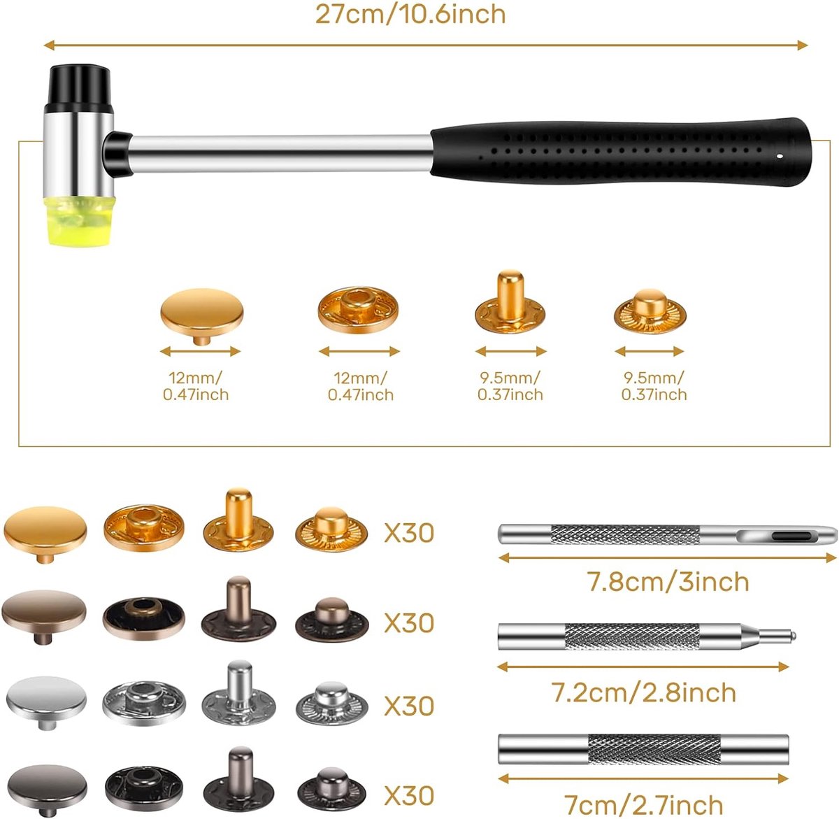 Taille du bouton pression : le diamètre du capuchon est d'environ 12,5 mm. Boutons pression Prym love - 12 x 6 couleurs jeu d'outils de Prym... Remarque : ces boutons-pression en cuir sont adaptés pour les tissus légers à moyens, ne conviennent pas aux tissus épais. Chaque lot est composé d'un capuchon, d'une douille, d'une tige de fermeture et d'un goujon. Qfun Lot De 120 Boutons Pression En Métal De 12 Mm Pour Cuir Avec Kit De 120 Boutons-Pression 12.5mm Boutons Métalliques Avec 4 Outils R Glage 1 Marteau Couleurs Pour V Tements Jeans Vestes Bracelets Tissu Cuir Les produits internationaux ont des conditions distinctes, sont vendus depuis l'étranger et peuvent différer des produits locaux, notamment en ce qui concerne l'ajustement, la classification par âge et la langue du produit, l'étiquetage ou les instructions. 120 ensembles, 6 couleurs : or, argent, bronze, bronze, noir mat et noir de jais.