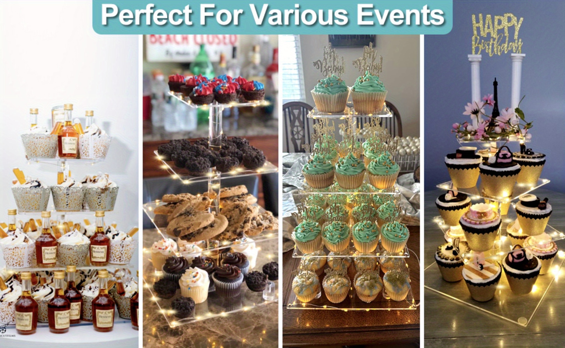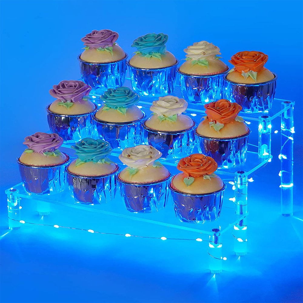 Support Dessert LED Présentoir à Cupcakes 4 étages LED Ulifeme - Acrylique Transparent Rechargeable Cupcakes Led Rechargeable