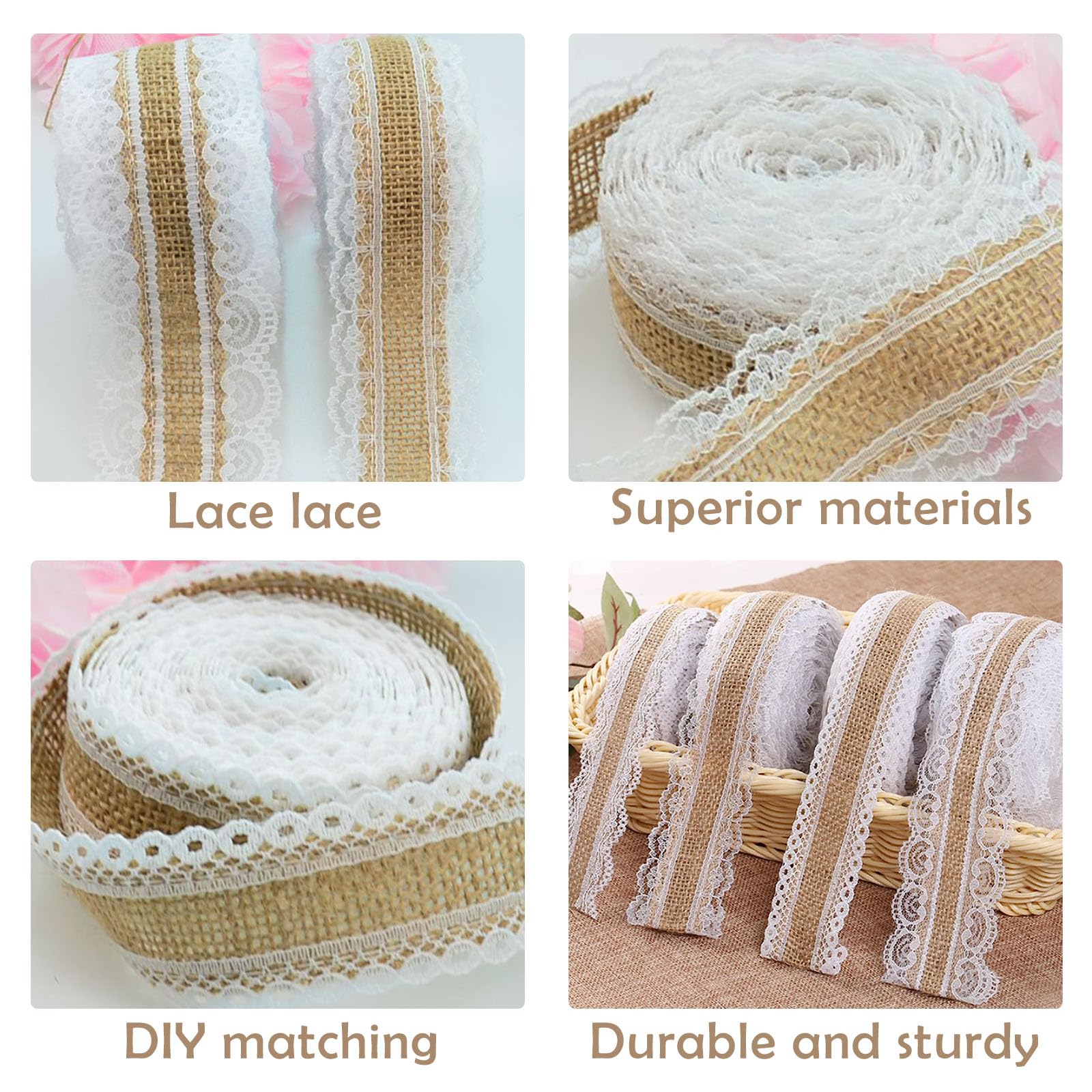 MATERIEL: ecologique, fabriqué en jute naturele et biodégradabletoile, dentelle, doux et résistant, difficile à déchirer, a une longue durée de vie et une belle apparence; TAILLE:1 metre de longue par rouleau, 5cm de large; Poids:89g. La combinaison de lin marron clair et de dentelle blanche ajoute une touche vintage à votre décoration, et la couleur unie du lin naturel peut être portée de façon décontractée avec de nombreux cadeaux faits à la main. Ruban Jute Avec Dentelle 10m X 2.5cm - Déco Rustique Acheter Rouleau Toile de Jute et Dentelle | Ruban Jute Dentelle Dix design différent : Fabriqué en toile de jute et de qualité supérieure et avec 10 rouleaux de ruban, chaque rouleau a un style différent, répond à vos besoins différents. Ruban Dentelle Jute 8 Pièces Ruban Dentelle Et Jute - Toile, Naturel, Rouleau Pour Cadeaux, Bricolage, Deco Mariage Champetre Ruban En Jute Avec Dentelle LARGEMENT UTILISÉ: convient à l'artisanat, aux couronnes d'arc, aux emballages de cadeaux, aux mariages, aux fêtes, aux compositions florales, aux décorations pour occasions spéciales, aux bouteilles, au scrapbooking,aux textiles d'ameublement, etc. ou faire de beaux nœuds pour des cadeaux, des arrangements floraux et des projets d'artisanat. Vous pouvez l'utiliser pour décorer des couronnes, des arbres, etc. Utilisation intensive, peut être utilisé comme chemin de table, dessous de service à thé, serviette de couverture ou matériaux de bricolage. Ce ruban de dentelle est tout simplement magnifique, la dentelle est belle et plate contre le support en toile de jute sans plis ni zones cousues défectueuses. plis ou zones cousues défectueuses