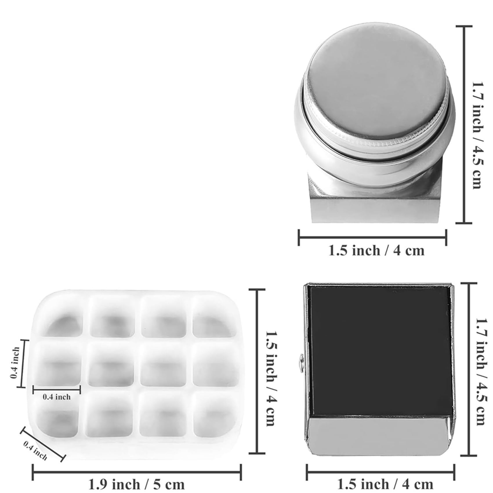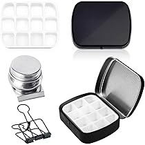 Cette boîte transformée en compagnon de peintre fournit non seulement un étui sûr et durable, mais dispose également d'une palette polyvalente de 12 puits pour le mélange et le stockage des couleurs. Matériau de la plaque métallique durable : fabriquée à partir d'une plaque métallique robuste, cette mini palette de peinture vide avec un couvercle sécurisé. Que vous soyez un artiste constamment en déplacement ou simplement quelqu'un qui aime peindre dans différents environnements, cette palette est conçue pour compléter votre style de vie créatif. LIGHUFEIC Lot De 2 Mini Boîtes Vides En étain à 12 Emplacements Différentes boîtes en aluminium pour un stockage sûr et à long terme des aliments. Découvrez notre gamme de boîtes en métal cylindriques, avec une ouverture au sou, particulièrement adaptées pour conditionner de la peinture, du vernis et différents produits de traitement … Les pots de peinture sont disponibles avec 2 types de fermetures : bague BRE ou bague TT (particulièrement adaptée pour les produits volatiles Le design de la palette, y compris un plateau intérieur amovible adapté à la plupart des boîtes, garantit que votre peinture est organisée et accessible. Lot de 2 mini moules à muffins en silicone pour 12 muffins - 31 x 22 cm Le plateau intérieur amovible, fabriqué en plastique et conçu, offre 12 compartiments pour une gestion et un rangement efficaces de la peinture Découvrez la commodité d'une mini palette d'aquarelles conçue pour votre voyage artistique. Légère et facile à transporter : conçue pour les artistes en déplacement, cette palette d'aquarelle légère avec couvercle est votre compagnon idéal pour les scènes en plein air, l'apprentissage en classe ou les réunions artistiques, répondant facilement à vos différents besoins de peinture.