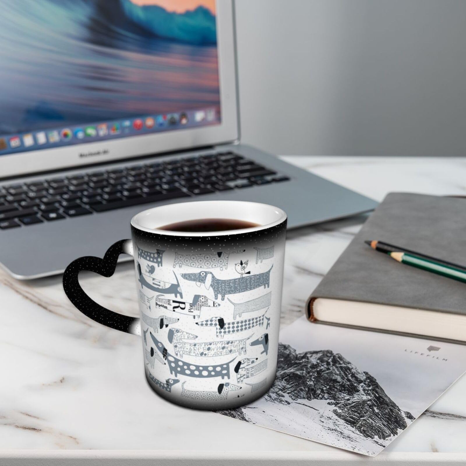 Tasse en céramique - Mignon lune, chat et marin - couleur changeante Tasse à café couleur changeante - Carte du monde - Noir - Porcelaine... FUkker Tasse à Café En Céramique à Couleur Changeante Pour Taille : la tasse froide mesure 8 cm de diamètre x 9,5 cm de haut/3,1 de diamètre x 3,7 de haut. Et l'image imprimée apparaîtra après avoir versé du café...