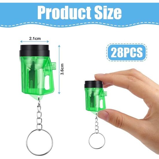 Utilisation polyvalente : notre lampe de poche pour enfants sert non seulement d'éclairage utile, mais peut également être utilisée comme accessoire de fête pour les enfants, les sacs de fête, les récompenses pour enfants et la décoration de fête pour les mariages, les anniversaires, Noël, Pâques, Halloween et bien plus encore. Mini lampe de poche : vous recevrez 30 paquets de mini porte-clés de lampe de poche en 6 couleurs, y compris rouge, rose, vert, violet, jaune et bleu. Mini Lampe De Poche Lot De 4 Mini Lampes De Poche : Lampe De Poche LED Pour Enfants Pour Petit Cadeau D'anniversaire D'enfant, Lampe De Poche étanche En Aluminium Petite Pour L'extérieur, Le Camping, La Randonnée Mini Lampe Torche Led Porte Clé Ainsi, vous pouvez répondre à vos différents besoins d'utilisation ou à vos besoins de fête. Il est robuste et facile à entretenir et suffisamment lumineux pour vous aider dans les activités nocturnes. 20-100 pièces Mini lampe de poche porte-clés en vrac Portable LED Qualité et robustesse : notre petite lampe de poche LED est fabriquée en plastique ABS fiable et est équipée d'un porte-clés en acier inoxydable et de piles bouton. La torche porte-clés sera idéale pour l'équipement EDC que l'on porte sur soi tous les jours. La mini torche porte-clés est un bon choix pour les personnes qui privilégient la mobilité et un équipement compact permettant d'éclairer instantanément leur environnement Facile à utiliser et à transporter : l'utilisation est très simple. La lampe de poche de camping à piles est livrée avec un porte-clés pour l'accrocher et l'emporter facilement. Vous n'avez pas à vous soucier des jours de pluie, des chutes de neige ou des situations d'urgence. Matériaux de haute qualité]: Le porte-clés mini lampe de poche contient une mini LED et un porte-clés pour enfants, le boîtier et le porte-clés sont... MINI LAMPE DE Poche Porte-clés Compacte Et Légère équipée De Deux - EUR 12,62.À VENDRE! 386580924789 Une mini lampe de poche est un cadeau parfait pour les garçons et les filles, ainsi que pour les familles et les amis. Taille appropriée : les porte-clés de lampe de poche ont des dimensions de 4 x 2 cm et conviennent à la plupart des enfants.