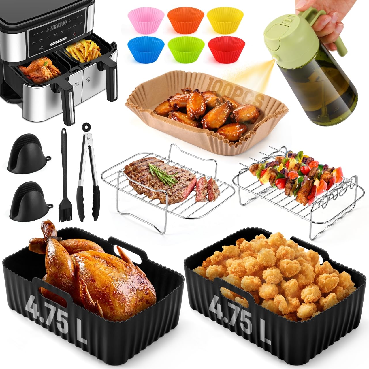 Lot de 100 doublures en papier sulfurisé pour friteuse à air comprimé COSORI Dual Air Fryer 8,5 L/Ninja Flex Drawer AF500UK AF500UKCP Air Fryer / Air Fryer / Air Fryer AF34 10L & Instant XXL 8,5 L 0,5 L Inart Friteuse à air double XXL 10,4 L BYKITCHEN Store, rendez-vous la vie un peu plus facile. BYKITCHEN Lot de 100 doublures pour friteuse à air BYKITCHEN Friteuse à air comprimé pour Ninja Accessoires parfaits pour friteuse à air double: les supports de friteuse à air comprimé mesurent 19 x 13 x 8,5 cm (L x l x H... Doublures en papier pour friteuse à air de qualité supérieure : fabriquées à partir de pâte 100 % de qualité alimentaire avec revêtement antiadhésif de qualité alimentaire, sain, antiadhésif, résistant à la graisse, imperméable, non absorbant, 100 % sûr pour un usage quotidien Doublures en papier sulfurisé pour friteuse à air comprimé : spécialement conçues pour les friteuses à air double COSORI 8,5 L/Ninja Foodi FlexDrawer, également compatible avec les friteuses à air Cuisinart XXL10,4 L/Russell Hobbs Dual Air Fryer 9 L Caractéristiques : Particulièrement adapté pour la friteuse à air double COSORI 8,5 L / Ninja Foodi Flex Drawer Air Fryer AF500UK 10,4 L Également compatible avec la friteuse Duronic Air Fryer AF34 10L & Instant XXL 8,5L et la friteuse à air Ometa 9L Dual Air friteer/Cuisinart XXL10., 4L Air Fryer/Russell Hobbs Dual Air Fryer 9L Doublures pour panier de friteuse à air avec design latéral, facile à transférer les aliments dans l'assiette. Résiste à la chaleur jusqu'à 232 °C, passe au micro-ondes et au four. Résistance à la chaleur et facile à utiliser : passe au micro-ondes et au four jusqu'à 232 °C. Fabriqué en pâte de bois de qualité alimentaire de qualité supérieure et revêtement antiadhésif, 100 % sûr pour un usage quotidien Résistant à la graisse, imperméable et non absorbant. Gardez votre friteuse propre : pas de trous et spécialement conçu avec la forme du bol, évite que le panier ne graisse et ne laisse aucun résidu. Doublures pour panier de friteuse à air avec design latéral, facile à transférer les aliments dans l'assiette. Fabriqué en pâte de bois de qualité alimentaire de qualité supérieure et revêtement antiadhésif, 100 % sûr pour un usage quotidien Doublures en papier pour friteuse à air de qualité... Accessoires Air Fryer Ninja BYKITCHEN Lot De 100 Doublures Pour Friteuse à Air Comprimé Accessoire Ninja Air Fryer 10.4l Ces feuilles de friteuse jetables antiadhésives ont toutes une forme de bol et une taille exacte, pas besoin de couper ou de plier.
