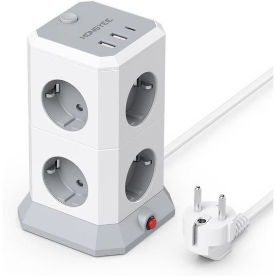 [USB-C 20W PD3.0 Chargement Rapide]Le connecteur USB C1 dispose de la technologie de charge intelligente Power Delivery 3.0 IC avec une puissance maximale de 20W,et de fournir le courant de charge jusqu'à 2,4 A,NVEESHOX Multiprise Electrique qui détecte automatiquement l'appareil connecté et offre une vitesse de charge optimale. Power strip il est trois fois plus rapide que le chargeur 5W original.