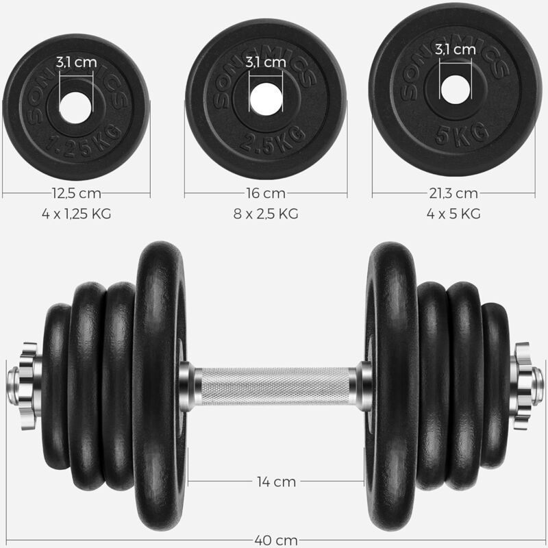 Vous pouvez facilement obtenir le poids de votre haltère cible Haltère Réglable 40 Kg 4 En 1, Tige Ergonomique, Sécurité Renforcée Haltères Réglables Cet ensemble de poids à main a une forme carrée pour plus de stabilité afin que vous puissiez faire certains mouvements que les haltères ronds ne peuvent pas faire, tels que les pompes. RINREA L'ensemble de poids réglables 5 en 1 peut vous aider à faire un entraînement complet du corps en l'assortissant à différents exercices. La paire d'haltères ajustables de SPORTNOW est un choix parfait pour vous. Une boîte de transport incluse vous permet de faire de l'exercice n'importe où. Livré avec des plaques de poids détachables, vous pouvez combiner les haltères de différents poids en fonction de l'intensité de votre exercice. Caractéristiques Entraînement complet du corps : vous pouvez régler le poids des haltères réglables pour aider vos différents mouvements, il peut vous aider à entraîner les muscles de tout le corps avec différentes gammes de poids réglables. Choisissez les différents poids avec différents exercices pour faire un entraînement complet du corps. Set de 2 haltères réglables conçus pour faire évoluer ton entraînement progressivement. Poids ajustable via une molette de 5 kg à 40 kg. Disques recouverts d’un revêtement thermoplastique pour protéger ton sol et limiter le bruit. Chaque haltère comprend 10 disques : de 5 kg à 40 kg. Poignées antidérapantes pour une sécurité maximale Caractéristiques : Dimensions du colis : 24 x 36 x 14 cm. Cet ensemble d'haltères réglables peut répondre à vos besoins d'exercice quotidiens, adapté pour les débutants et les entraîneurs expérimentés., 1., Ensemble d'haltères réglables 5 en 1 L'ensemble d'haltères réglables peut être ajusté à 1,4 kg, 2,3 kg, 3,2 kg, 4,1 kg et 5 kg selon vos besoins d'entraînement. VAZILLIO Haltère Musculation Réglable 2 * 5KG, 5 en 1 Haltères Poids Réglables pour Homme et Femme, Poignée en Néoprène Antidérapante pour Fitness, Gym, Pilates, Entraînement Musculaire - Bleu Cet ensemble d'haltères pour homme et femme est super facile à monter et à démonter. Nos poids réglables ne prendront pas beaucoup d'espace de rangement, de sorte que vous pouvez les utiliser à la maison, au bureau, à l'extérieur, ou partout où vous le souhaitez. Poids du colis : 10,4 kg. L'haltère à poids unique équivaut à 5 haltères fixes et ne prendra pas trop d'espace de rangement. Réglage rapide du poids : cet ensemble de poids dispose d'un mécanisme intuitif à bouton coulissant qui vous permet de régler le poids en quelques secondes – il suffit de glisser le bouton gris.
