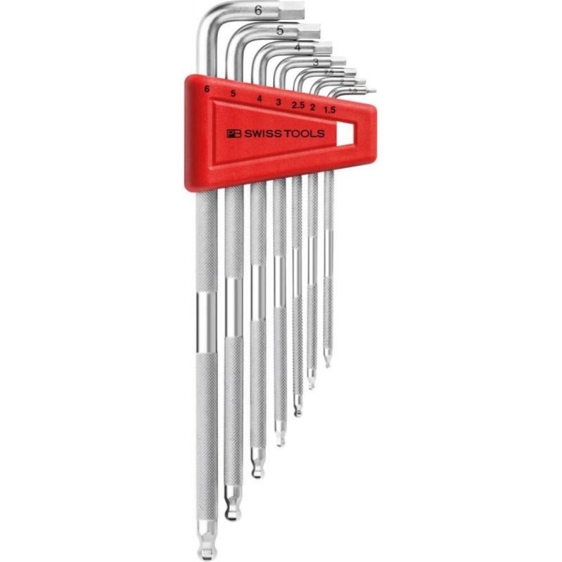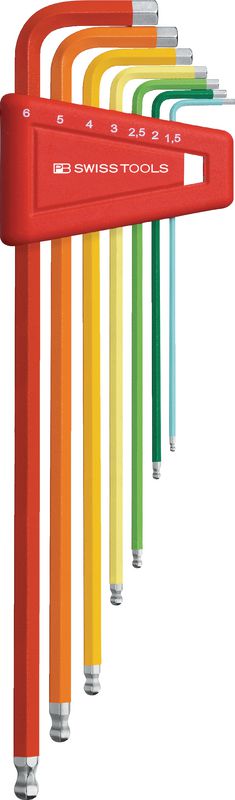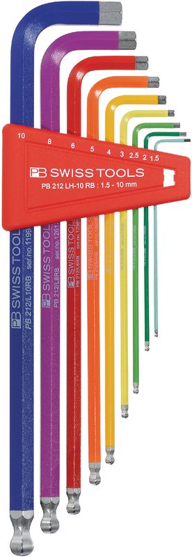 Clé allen 90+100 Degré court Rainbow 2mm Tête sphérique PB Swiss Tools, FP , 329770 PB 212H10 RB SET 1.5...10 Chiave a brugola a L PB SWISS TOOLS, 9 pezzi, Metrico Qué significa FP Set Clé Allen En Support Plastique 9-unités 15-10mm 100 Degré Tête Sphérique PB Swiss Tools Acier à ressort fortement allié, trempé sur toute la longueur, chromé Avec tête sphérique et bras raccourci coudé à 100° Spécialement conçu pour le vissage dans des endroits étroits et difficiles d'accès DIN 911 L, ISO 2936 L