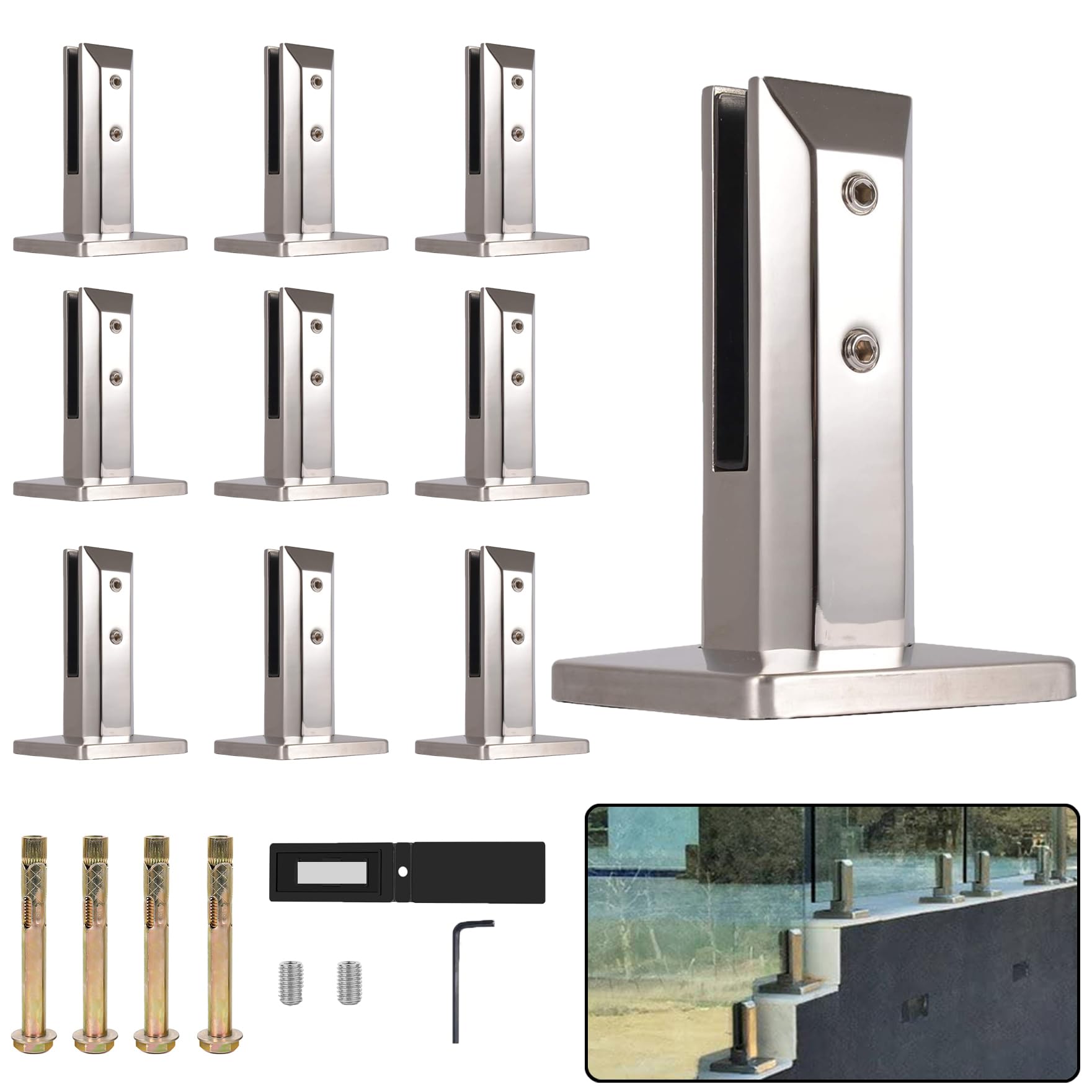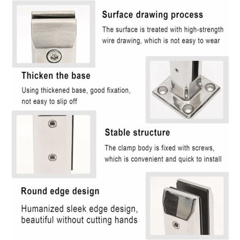 Beau argent, style moderne, surface lisse. Merci de votre compréhension. Pourquoi choisir notre support de clôture de piscine en verre ? √ Acier inoxydable 304, antirouille, résistant à l'usure. Caractéristiques : fabriqué en acier inoxydable 304, adapté pour les panneaux en verre trempé d'une épaisseur de 8 mm, 10 mm, 12 mm, 15 mm ou 5/16, 3/8, 1/2, 9... Contenu de l'emballage : 2 supports de serrage en verre. Foxwake est expert dans la fabrication de pièces de serrage. Remarques : Toutes les dimensions sont mesurées manuellement et peuvent varier de 1 à 2 mm. Mettez un clip en verre tous les 1 mètre, l'épaisseur du verre de support : 10-12 mm. Montage simple et rapide avec les sets de montage EasyMount Vario. Par de simples poussées, les verres peuvent être ajustés jusqu'à 40 mm. L'outil de montage BO 5215281 apporte une facilité supplémentaire - il vous permet d'effectuer le montage sans problème du côté accessible Avec joint, protège le verre contre la casse. √ Poids : 791 g chacun, très solide et ne se casse pas facilement. Sûr et exquis : formé par moulage intégral avec un matériau en acier inoxydable 304 de haute qualité, haute résistance et sécurité. Comprend un boulon d'expansion au sol, une clé Allen. Lot De 24 Supports De Serrage Robustes En Acier Inoxydable 304 Chaque support de clip en verre Foxwake est soutenu par une qualité supérieure et est soumis à une inspection de qualité stricte. Remarque : nous ne fournissons que des boulons d'ancrage en béton, donc utilisés pour les planchers en bois, vous devez acheter des vis avec une grande tête. Acier inoxydable : le robinet de serrage pour garde-corps en verre est fabriqué en acier inoxydable 304, résistant à la corrosion et à la rouille. Ensemble de pinces à verre robustes en acier inoxydable 316 Construction en acier durable pour répondre à vos besoins de montage. Large application : excellent ajout à la piscine à la maison. Caractéristiques : Matériau : acier inoxydable 304., Épaisseur du verre : 0,95 cm ou 1,27 cm., Poids net : 791 g. Idéal pour les clôtures de piscine en verre modernes / rampes d'escalier en verre. Les vis pour chevilles sont en métrique.