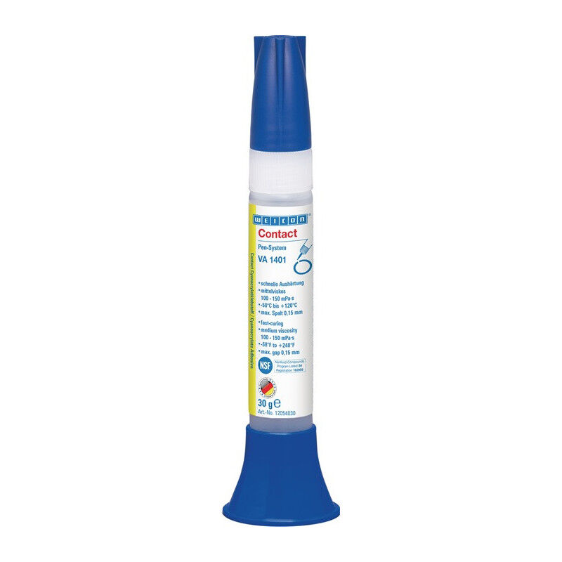 Caractéristiques : l'adhésif WEICON Contact VA 1401 est adapté pour coller des métaux, des plastiques et du caoutchouc, à la fois entre eux. Traitement : nettoyez et dégraissez les surfaces avec le nettoyant de surface WEICON Appliquez l'adhésif uniquement sur l'une des surfaces à coller avec une épaisseur minimale de couche de 0,05 mm et max., 0,2 mm. Weicon Adhésif cyanoacrylate Contact VA 1401 30 g Weicon VA 1401 Colle 12054012 12 G - Acheter Sur Colle cyanoacrylate VA 1401 30 g liquide incolore et clair système Pen...