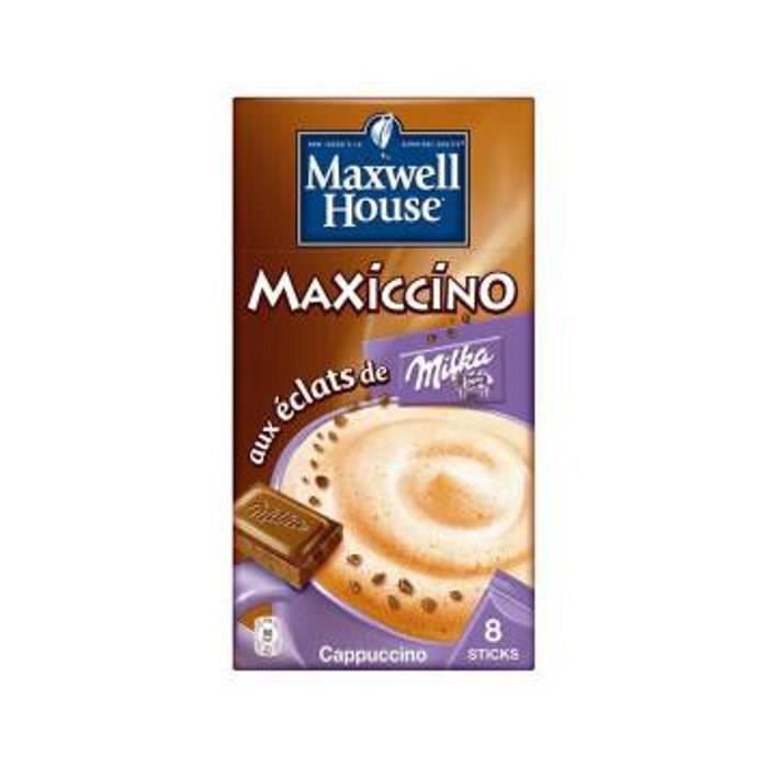 Cafe soluble sticks cappuccino 10 sticks, disponible dans votre magasin Leader Price LP Possession Description du produit MH CAPPU MILKA SOLUBLE 176G Ingrédients Ingrédients : Chocolat en poudre 41% (sucre, cacao en poudre 10%), sucre, sirop de glucose, huile de coprah totalement hydrogénée, maltodextrine, LAIT ECREME DU PAYS ALPIN (5,0 %), protéines de lactosérum (de LAIT), café soluble (3,0 %), LAIT écrémé en poudre, perméat de lactosérum (de LAIT), stabilisants (E340, gomme xanthane, E452), arôme, amidon modifié, antiagglomérant (E551, E341), lactose (de LAIT), protéines de LAIT, sel, émulsifiant (E471). Clause de non-garantie Photographie non contractuelle. MAXWELL HOUSE Cappuccino café soluble goût chocolat en stick (8 sticks) 176g ... Cafés de la marque Maxwell House. Cappuccino. EAN 8711000510704. ... 14,99 € tax... C'est parfait pour passer une agréable pause entre collègues ! Mercadona jubila la cafetera, novedad a la venta por 3 euros Cappuccino Vanille Nescafé Cappuccino Vainilla 6 Sticks 22g C/u Café Soluble Retrouvez toutes nos offres et promotions dans le rayon Cappuccinos. Faites vos courses en ligne aux mêmes prix qu'en magasin et faites vous livrer ou retirez rapidement vos courses dans votre magasin Versez un stick par tasse. Elles ne sont pas forcément exhaustives et ne sauraient se substituer aux informations figurant sur l'emballage du produit qui font seules foi, et auxquelles vous êtes invités à vous reporter, notamment en cas d'intolérance alimentaire, e 176 g Vendu par boîte de 80 sachets de 9,5 g. Avertissement De Sûreté Présence d'allergènes : contient du lait et du lactose.