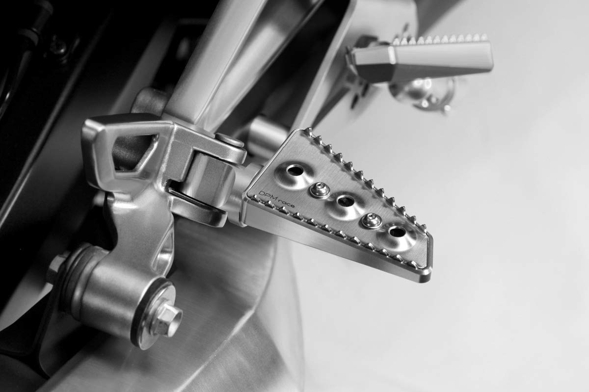 Produit spécifique pour Honda Integra 750 à partir de 2014., Le kit en acier inoxydable et en aluminium massif offre une excellente adhérence et la possibilité de faire varier le positionnement. Integra 750 2014/19 - Kit Pedane Supplementari (R-0811) - Poggiapiedi Pedalini - Minuteria Inclusa - Facile Installazione - Accessori De Pretto Moto (DPM Race) - 100% Made In Italy Complet avec visserie et instructions de montage - Possibilité de positionner les plateformes dans 11 positions différentes - Bonne Grip Kit additional footrests Kit additional footrests RACE - art. R-0811. Kit made of inox steel and aluminium, machined from solid. It offers... Kit repose-pieds pilote DPM pour Honda Forza 750 Kit montage repose pieds repliables courts (60mm) + réhausses réglables CNC Supermotard. Complets avec notice et petites pièces, ils peuvent être appliqués sans apporter de modifications. COULEUR : Argent. CODE : R-0941. KIT REPOSE-PIEDS [ Course... Aluminium + Acier Inoxydable - Anodisé/Brossé - Laser + Fraisage Complet avec de visserie et les instructions de montage s'appliquent sans apporter de modifications.
