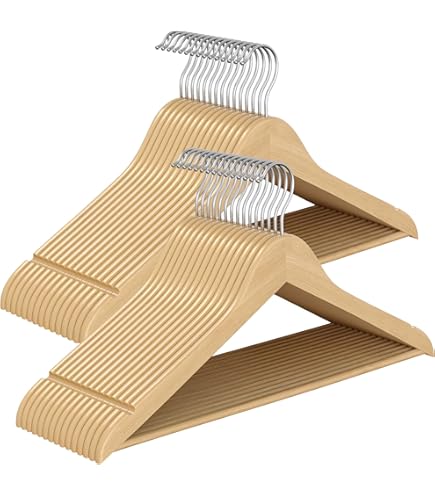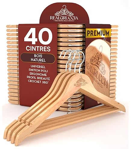 Crochet pivotant de suspension en métal , Couleur : bois clair Lot de 8 cintres en bois. Idéal pour les ensembles. Forme arrondie pour éviter les déformations. Avec barre transversale porte pantalon et... Cintre galbé, 35 cm, enchoches bois lotus, crochet nickel, blanc - par Avec barre transversale porte pantalon et encoches de suspension, idéal pour les fines bretelles. Hangers Clothes Lot De 8 Cintres En Bois 45cm Naturel Cintre En Bois Prix unitaire à partir de 7,8€ HT. Matériau: Cintre galbé avec épaules élargies pour veste et manteau en hêtre. Fabriqué en Europe. ... Dimensions: Diamètre : 45... Lot de 8 cintres display Galbé pour éviter les déformations.