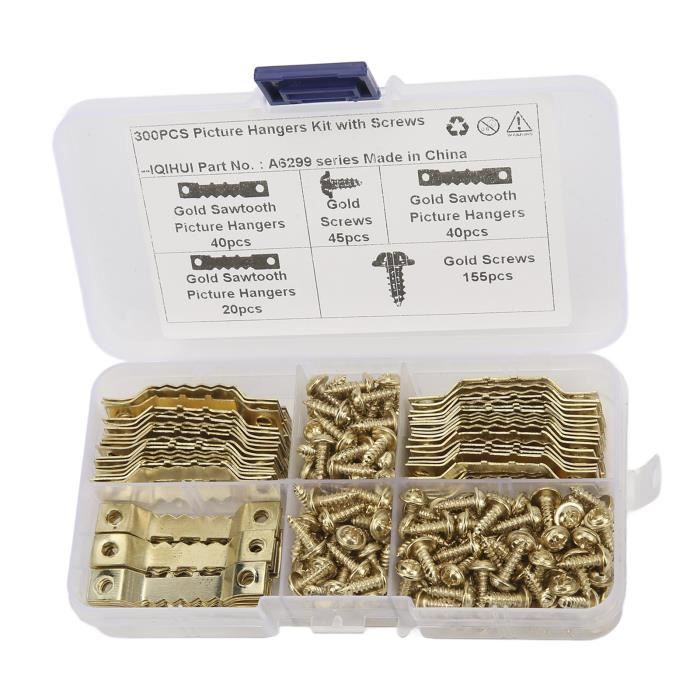 Large application : parfait pour accrocher des cadres photo, des photos de mariage, de la peinture numérique, des cadres photo de famille, des galeries d'art d'exposition, des décorations d'horloge murale tendance, etc. LUORNG Lot de 50 crochets en dents de scie à double trou argenté avec 100 vis incluses, pour cadres photo, peintures, photos, œuvres d'art, horloges... Lot de 50 petits cintres en acier en forme de dents de scie avec vis Contenu de l'emballage : chaque colis comprend 50 crochets en dents de scie et 100 vis de 12 mm. Lot De 50 Cintres Robustes En Dents De Scie Avec Vis Pour Matériau ] Fabriqués en métal nickelé résistant à la rouille, ces cintres pour photos sont robustes et durables, garantissant que vos articles sont solidement montés. [Applications larges] Accrochez et affichez vos cadres photo, horloges et d'autres articles en toute sécurité avec ce kit polyvalent qui comprend des cintres et des vis à double trou en dents de scie. [Assortiment... Karosom Lot de 50 cintres robustes en dents de scie avec 100 vis, pour accrocher des cadres photo, des peintures, des œuvres d'art, des horloges, des décorations d'intérieur Ces cintres lourds en dents de scie sont fabriqués en métal galvanisé avec une surface lisse, résistant à la rouille, ne se déforme pas, durable, robuste et pas facile à briser.