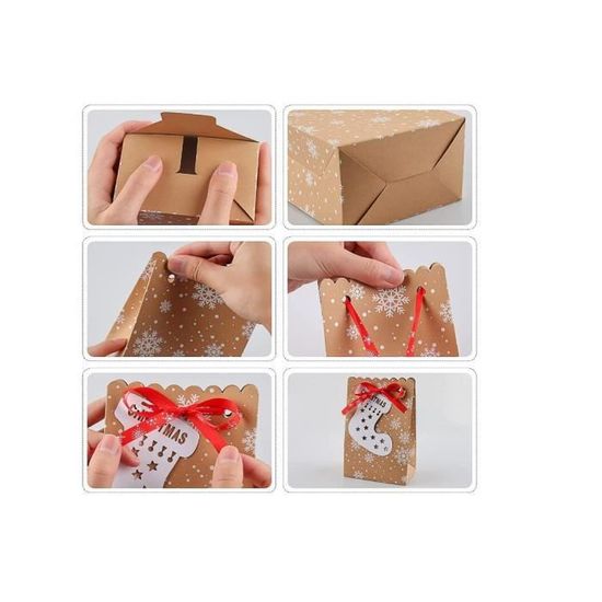 Si vous planifiez une fête de Noël pour les enfants, remplissez-les de bonbons et de jouets pour créer des sacs de cadeaux de Noël! 24 pièces Sac Cadeau de Noël en Papier Kraft Elk, Sac de Noël Achetez 24 pièces sacs cadeaux en papier de noël avec ensemble d'autocollants de scellage, 6 modèles de sacs d'emballage cadeau de bonbons et de biscuits... Mignon et faire des cadeaux d'emballage un jeu d'enfant. Flocon de neige, bonhomme de neige, arbre de Noël, cerf et autres imprimés de Noël, vous allez adorer ces magnifiques sacs-cadeaux kraft colorés. Quiconque recevra ces jolis sacs-cadeaux sera heureux et aimera. Sacs de fête de Noël: ils sont parfaits pour présenter des collations et des friandises faites maison ainsi que des cadeaux de Noël de dernière minute. Haute qualité: chaque sac en papier de fête est fait de papier kraft 70 g / m2 et imprimé avec une encre écologique, durable et facile à déplier ou à plier. Matériel: papier kraft 70GSM, impression écologique Taille: 12 x 7,5 x 23 cm Modèles: 6 modèles différents Paquet: 24 pcs x sacs en papier de Noël 24 autocollants de Noël Grande taille: 12 x 7,5 x 23 cm. Lot de 50 Sacs Cadeaux en Papier Kraft avec 72 Autocollants, Sacs à Bonbons, Sacs Cadeaux d... Pochette Cadeau 24 Pièces Sacs Cadeaux En Papier De Noël Avec Ensemble D Boite Cadeau Noel Les personnes qui ouvrent le sac-cadeau verront la bénédiction du Nouvel An.