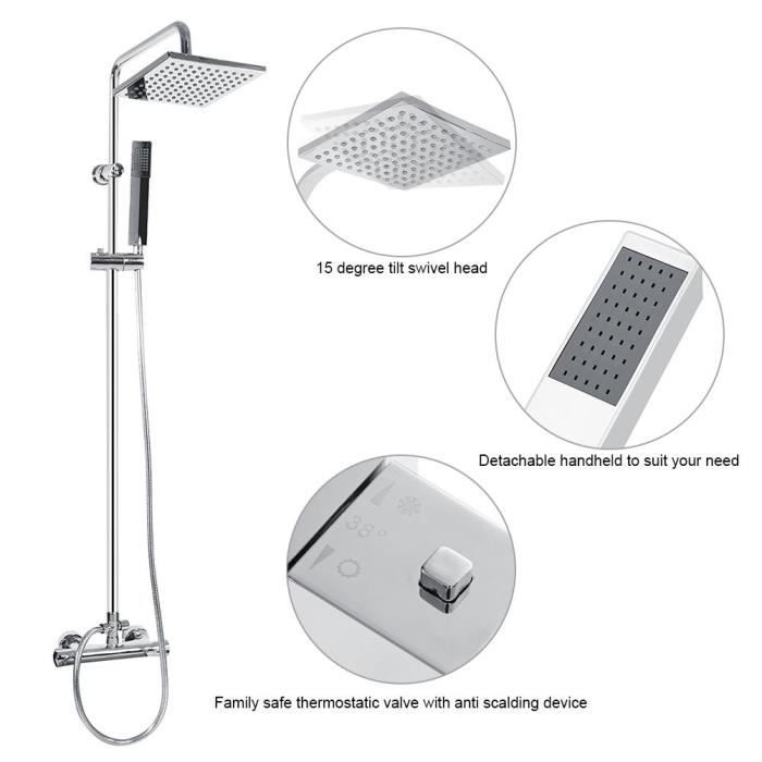 ► Caractéristiques : corps de valve : inverseur en laiton : support de douche intégré : laiton Taille de connexion : filetage conique standard 1/2 NPT Douche de tête : douche à main extra large de 30,5 cm : corps en laiton Coque décorative : cartouche en acier inoxydable : cartouche à disque céramique d'équilibrage de pression (anti-brûlure) Installation : support mural. Douche à effet de pluie dissimulé à LED 30 * 30 CM Pommeau de douche Pommeau de douche de 30,5 cm : le grand arroseur de pluie de 30,5 cm mélange l'eau avec de l'air pour augmenter la pression de l'eau à 100 %, et simule la pluie naturelle pour vous fournir une expérience naturelle de l'eau. Pommeau de douche de 30,5 cm Midanya : les produits Midanya sont faciles à installer, polyvalents et de haute qualité, ce qui vous permet de vous sentir confiant que votre choix est correct. Il ressemble à rester debout dans la nature et profiter de la sensation de pluie caressante. ► L'emballage comprend 1 pommeau de douche à effet pluie de 30,5 cm, 1 valve brute avec inverseur 1., 1 pulvérisateur à main. Pommeau de douche de 30,5 cm : le robinet de baignoire dispose d'un grand arroseur de pluie de 30,5 cm qui mélange l'eau avec de l'air pour augmenter la pression de l'eau à 100 %, et simule la pluie naturelle pour vous fournir une expérience naturelle de l'eau. C'est une bonne aide pour votre maison. Matériau de qualité supérieure : cet ensemble de robinets de baignoire est fabriqué à partir de matériaux de qualité supérieure avec des performances exceptionnelles pour garantir une haute qualité et une meilleure durabilité. Notre valve de douche est livrée avec un inverseur intégré. Faites de votre douche quotidienne une expérience de Spa revigorante. En plus de la grande pomme de douche à effet de pluie qui procure la sensation relaxante d’une pluie estivale douce, vous disposez également d’une douchette à main réglable offrant un jet d’eau plus puissant. Une robinetterie qui assemble les deux éléments à la fois pour vous procurer une sensation de douche... Pommeau Ciel De Pluie Douche Système Douche Effet Pluie Pommeau De Douche Carré Douchette Effet Pluie Si vous aimez le design élégant et moderne dans la salle de bain, ce produit est fait pour vous.
