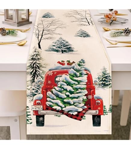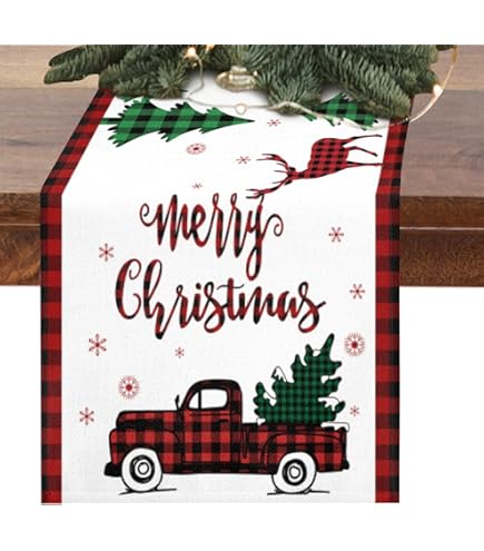 Ce chemin de table classique rouge camion est le meilleur choix comme surprise. Dimensions : 33 x 183 cm (l x L). Décoration de table de Noël : le chemin de table Merry Christmas mesure 35 x 180 cm et convient pour une table pouvant accueillir 4 à 8 personnes. Cette longue nappe est très bien adaptée pour les décorations de table rectangulaires, rondes, ovales ou d'autres décorations de table de Noël Motif : camion de Noël. Caractéristiques du produit : Design camion de Noël : avec un camion rouge joyeux chargé de beaux arbres de Noël et de boîtes cadeaux de Noël, d'étoiles, de cannes de sucre d'orge et de bord à carreaux de buffle, ce chemin de table de Noël classique deviendra le projecteur de votre fête et remplira votre maison de joie et de joie de Noël. Design camion de Noël : avec un camion rouge joyeux chargé de beaux arbres de Noël et de boîtes cadeaux de Noël, d'étoiles, de cannes de sucre d'orge et de bord à carreaux de buffle, ce chemin de table de Noël classique deviendra le projecteur de votre fête et remplira votre maison de joie et de joie de Noël. Contenu : 1 chemin de table. Décorations de Camion Rouge de Noël Ornements de Ferme Modèle de Camionnette Rustique Décoratif pour Centre de Table Nouvel An Remarque : Conseils d'entretien : lavage en machine à l'eau froide, cycle délicat, séchage par culbutage à basse température, repassage à basse température (si nécessaire), ne pas utiliser d'eau de Javel. Tissu de qualité supérieure : fabriqué en faux lin 100 % polyester, couture robuste, doux et durable, protégeant votre table des rayures, des déversements et des taches. Un cadeau de Noël exquis est passionnant pour votre famille et vos amis. Chemin De Table Rouge Noel Bonhause Chemin De Table Camion De Noël, Arbre De Neige, Bonhomme De Christmas Table Decorations Ce chemin de table à carreaux de buffle rouges et noirs est une belle décoration de table pour les fêtes. Utilisez le chemin de table pour mettre en valeur vos... Nombreuses utilisations : ce chemin de table est adapté pour décorer des buffets, des tables, des armoires de buffet, des tables TV, des tables de ferme, des bars à café, des tables de buffet, des coiffeuses, rendant votre vie unique et élégante. Cadeau idéal : Noël arrive.