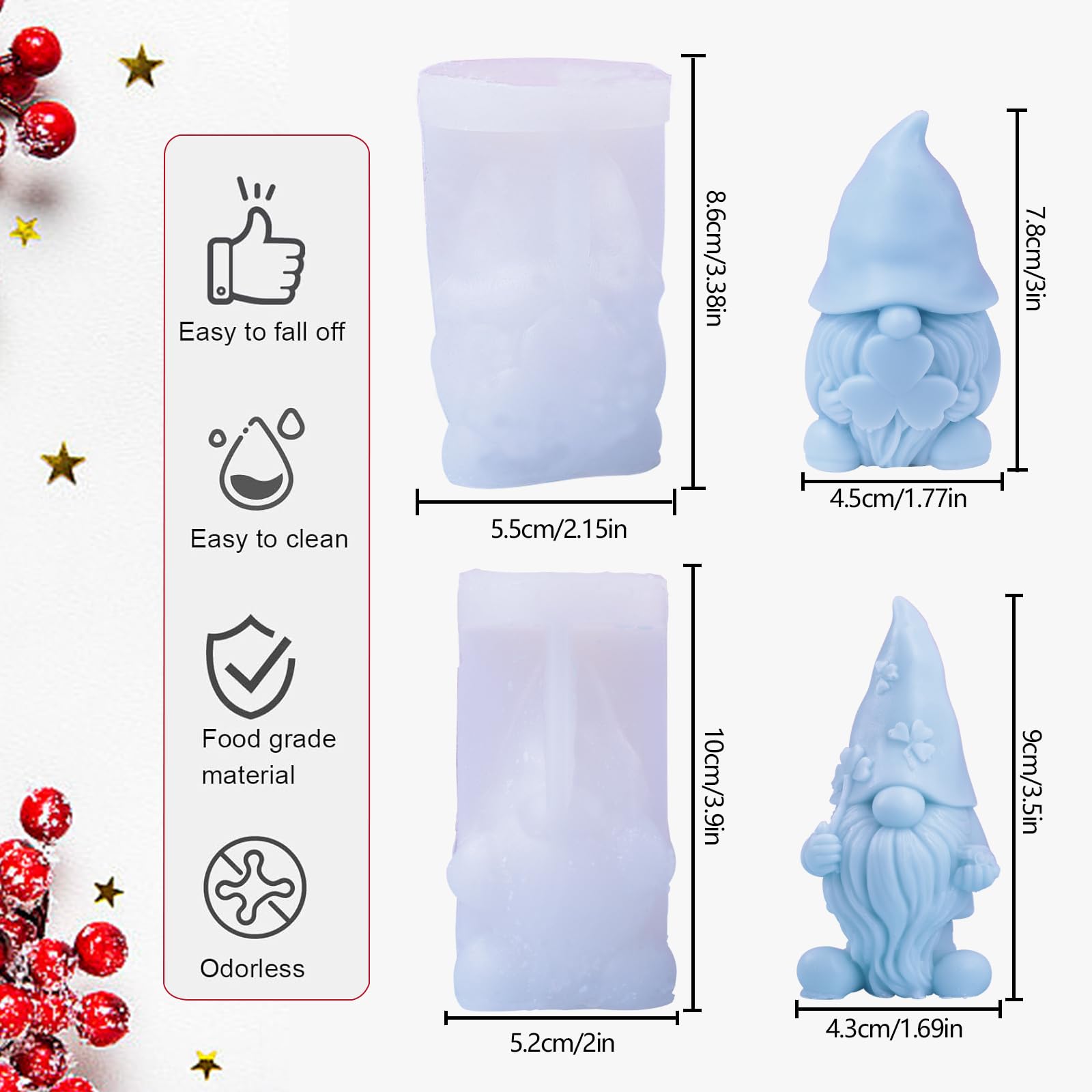 Moule en silicone DIY : vous pouvez utiliser de la résine UV, de la peinture au savon, des paillettes, des paillettes, des fleurs séchées ou des bijoux pour fabriquer toutes sortes d'artisanat et de bijoux, etc. Les moules à bougies en silicone sont principalement utilisés pour la fabrication de bougies faites à la main, de moules à bougies de Noël, de moules de bougies de fête, de mariage, de moules à gelée, de moules à bougies artisanales, de bougies d'éclairage et de toutes sortes de formes d'artisanat décoratif. Moules Bougie Cierge Moule à Bougie En Silicone Père Noël, Bricolage Fait à La Main, Bougie D'aromathérapie, Artisanat De Gypse, Cadeau De Noël Moule Bougie Chandelle Utilisation : gâteaux, pains, mousses, gelées, aliments tempérés, chocolats, etc. Ces moules à bougies en silicone sont faciles à démouler, de sorte que la résine peut se former dans le moule et durcir complètement. Moule en Silicone pour bougie de hérisson, fleur mignonne, statues de hérisson 3D, savon, résine, plâtre, outil de fabrication, cadeaux faits à la main, décoration de maison, DIY Peut être utilisé en toute sécurité dans le four, le micro-ondes, le lave-vaisselle et le réfrigérateur Moule en forme de maison : le lot de moules est conçu pour être une forme de maison 3D dans une variété de couleurs et de formes, avec des portes creuses... Cela permet de présenter la bougie très facilement sans endommager le moule de la bougie Les moules en silicone mignons et enfantins à couler sont très bien adaptés pour la décoration de la maison, en particulier pour les occasions de Noël, et sont un bon outil pour créer une atmosphère Moule en silicone unique : le moule en silicone mignon pour bougies a une forme unique, une texture claire et une forme réaliste qui rend votre dessert plus vif et accrocheur Moule en silicone unique : le moule en silicone mignon pour bougies a une forme unique, une texture claire et une forme réaliste qui rend votre dessert plus... Overview Essential details Type: Cake Tools Cake Tools Type: Moulds Material: Silicone, Food grade silicone Feature: Disposable, Susta Facile à démouler : les moules en silicone sont doux et flexibles, avec une texture élevée et une grande ductilité. Il suffit d'appuyer sur le fond du moule pour laisser libre cours à votre créativité, facile à nettoyer