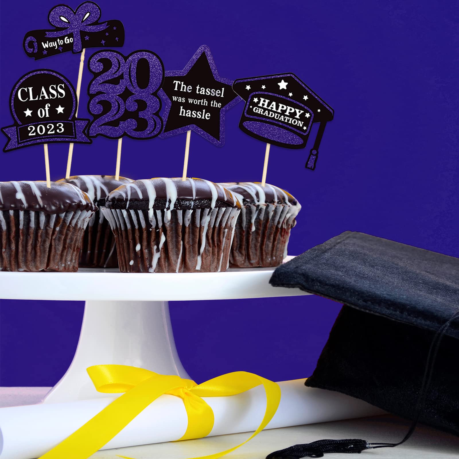 Décorations De Remise Des Diplômes 2025, Décorations De Cupcakes De Caractéristiques : - Contenu : lot de 32 pièces. Matériau de qualité supérieure : ces décorations à paillettes pour cupcakes de remise de diplôme 2023 sont fabriquées en papier cartonné pailleté de 300 g de haute qualité et cure-dents de qualité alimentaire, très sûr pour les mettre sur les gâteaux, cupcakes, crème glacée, fruits, tarte, dessert, fromage ou tout plat et apéritif que vous voulez décorer. Uniquement à des fins de décoration, il n'est pas comestible et veuillez ne pas l'utiliser au four ou au micro-ondes. Lot De 30 Décorations De Cupcakes à Paillettes Pour Remise De Diplôme 2023 - Décoration De Gâteau Pour Remise De Diplôme 2023 (violet Vous pouvez également les appliquer pour la crème glacée, les fruits, les cookies et autres desserts. Conseils : conçu pour un seul côté, le dos est blanc uni. Nombreuses utilisations : design unique sur le thème de la remise de diplôme 2023., Meilleure décoration de gâteau de fête qui peut être utilisée lors de décorations de fête à thème 2023 et d'autres fêtes à thème similaires. Ils peuvent rendre vos cupcakes plus attrayants et apporter du plaisir à votre fête. Ces décorations à paillettes pour cupcakes de remise de diplôme 2023 sont si mignonnes et idéales pour les décorations de cupcakes à thème de remise de diplôme 2023, telles que la maternelle, le junior, le lycée, l'université, le maître ou le docteur. Contenu de l'emballage : 24 décorations pour cupcakes « So Proud of You » pour remise de diplôme 2023. Livré assemblé, de sorte que vous pouvez l'insérer... Veuillez ne pas les mettre dans le four car ils sont uniquement décoratifs et non comestibles.
