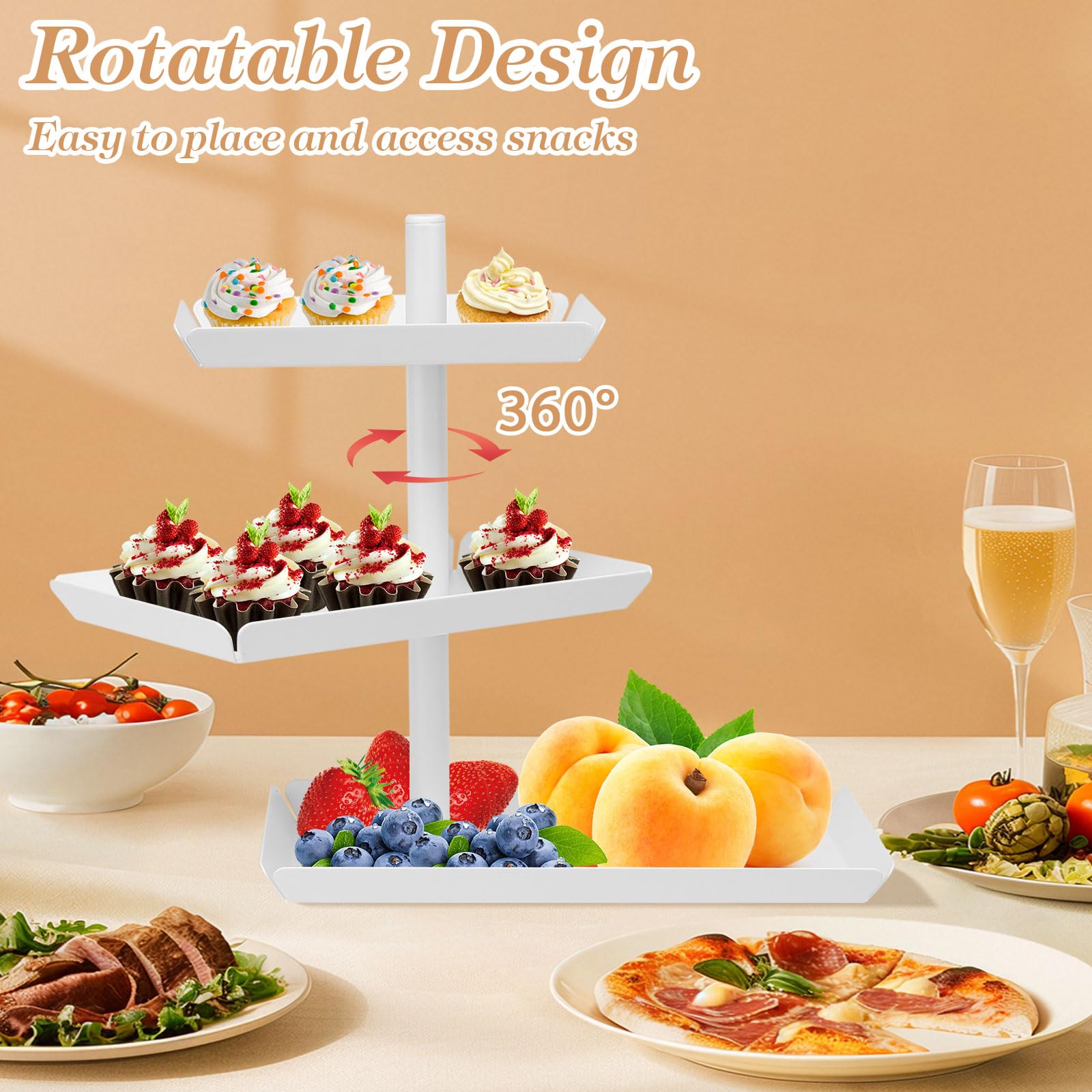 Description du produit : Assemblage du bloc : piliers encliquetables + interface design pour un assemblage facile. Avec trois couches d'assiettes blanches et de piliers blancs, ces supports à cupcakes sont adaptés à tout style d'intérieur et à thème de fête. Omabeta présentoir à desserts rotatif Machine à desserts rotative En métal blanc élégant, il tourne à 360° pour montrer tes créations sous tous les angles. Dimensions : 24,5x15x28cm - assez spacieux pour gâteaux, pâtisseries... Style élégant : cet emballage de présentoir à cupcakes classique peut laisser une bonne impression lorsque vous recevez des invités. Présentoir Pour Gâteau NUPTIO Présentoirs à Gâteau Blanc, Gâteau De Dessert De Mariage 20cm Gâteau Rond Se Dresse Pour Fête De Fête D Anniversaire De Mariage Anniversaire Baby Shower Présentoir à Gâteau Pâtisserie Entretien pratique : structure amovible et lavable, facile à nettoyer avec un chiffon doux. Diamètre des plaques inférieures : 14,5 cm pour la petite assiette, 19,5 cm pour la plaque centrale, 24,5 cm pour la grande assiette, et la hauteur totale est de 34 cm. L'emballage comprend : comme indiqué sur l'image, la grille à gâteau peut contenir 12 à 19 cupcakes de taille standard et a assez de hauteur pour placer le beau glaçage de gâteau. PRÉSENTOIR À DESSERTS, plateau de service, présentoir de bonbons aux...