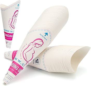 Ils sont particulièrement utiles pour les activités de plein air telles que le camping, la randonnée et les voyages ou dans des situations où les toilettes propres ne sont pas disponibles. Avantages de l'utilisation de poubelles en papier pour femme : 1., Solution hygiénique : chaque poubelle est jetable, ce qui garantit une utilisation propre et hygiénique. Évitez les problèmes d'inconfort et de confidentialité liés au hockey dans un état moins idéal Pipilady Lot de 7 urinoirs pliables pour femmes pour uriner debout, en Nos gobelets jetables en forme de pénis sont spécialement conçus pour les femmes, y compris les femmes enceintes et les blessés, et offrent une solution hygiénique et pratique pour uriner dans des conditions difficiles. Pratique : particulièrement utile dans les situations où les toilettes traditionnelles ne sont pas disponibles, inconfortables ou peu hygiéniques. Conçu pour les femmes de tous âges, il permet d'uriner debout sans avoir à se déshabiller, évitant ainsi les éclaboussures et les souillures. Polyvalent: idéal... 【Intimité et confort】: Conçu pour les femmes de tous âges pour se tenir debout et uriner facilement, sans baisser les vêtements pour éviter les déversements et les taches. Cela en fait un excellent choix pour les voyageurs, les campeurs, les festivals ou ceux qui s'engagent dans des activités de plein air. Jetez la poubelle de manière responsable après utilisation. Compatibilité universelle : s'adapte à la plupart des bouteilles d'eau minérale, ce qui garantit facilité d'utilisation et polyvalence dans différentes situations. Large gamme d'applications : créé pour les femmes de plein air, parfait pour le trekking, l'alpinisme, les sports nautiques et les festivals, offrant une expérience sans faille dans n'importe quel environnement accidenté Pisse Debout Lot De 10 Urinoirs Jetables Pour Femmes, Entonnoir Pour Femmes Pipi Debout Femme Cela élimine le besoin de nettoyage et empêche la propagation des germes., 2., Indépendance pratique : permet aux femmes de toutes les conditions physiques d'uriner debout, sans avoir à retirer les vêtements ou à entrer en contact avec des installations hospitalières, une solution digne et pratique., 3., Facile à utiliser : ces poubelles sont simples et faciles à utiliser et peuvent être un véritable atout pour les femmes qui ont du mal à s'accroupir ou à atteindre des toilettes propres.
