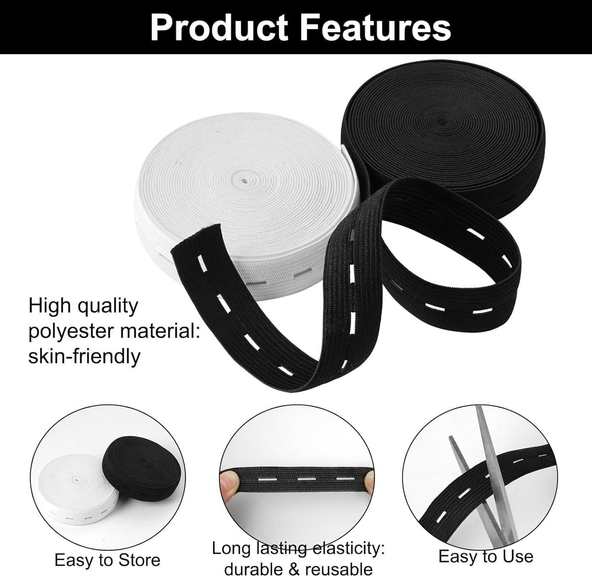 Caractéristiques : Matériau : polyester Quantité : 2 rouleaux Couleur : Noir et blanc Taille : 5 metres/5 m x 20 mm/2 cm (L x P) Matériaux de haute qualité : 1., Notre bande de couture fabriqué en polyester de haute qualité avec l'élasticité et la flexibilité, doux et durable. Large gamme d'utilisation : la bande élastique en tricot avec bonne élasticité peut être largement appliquée pour les perruques, vêtements, pantalon, vêtements de sport, jupes, d'articles de bricolage et ainsi de suite Guide essentiel pour tricoter des élastiques : conseils et techniques Elastique Stretch Lycra 123 2 Pcs Support élastique Stretch à Tricoter élastique à Elastique Pour Mercerie 5 metres/5 m, total env., 10 metres/10,1 m. 2 Rolls Bande Elastique Couture 20 mm, Élastique Couture Total 10 m, Tresser Élastiques avec 20 Boutons en Résine, Polyester Elastiques à Boutonnière, pour... Application : Bandes élastiques avec boutonnière peuvent être utilisés pour coudre pantalons ou jupes, qui peuvent être ajustés automatiquement dans votre taille. Boutonnière imprimés : ce cordon élastique plat est livré avec boutonnière, pratiques pour vous aider à ajuster la longueur que vous souhaitez, en particulier pour les vêtements de femme enceinte Contenu de l'emballage : 2 x bande élastique 2 PIÈCES DE Bandes éLastiques à Coudre pour Tricoter, Cordon éLastique Plat6165 - EUR 29,99.À VENDRE! 226271706866