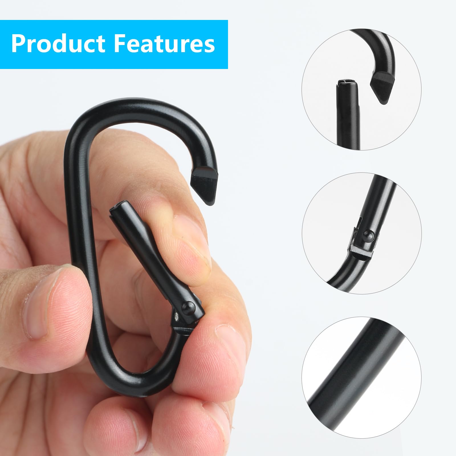 Quatre tailles disponibles : les petits mousquetons sont disponibles en tailles de 30/40/50/60 mm, offrant suffisamment d'espace pour la plupart des articles. Lot de 20 mini mousquetons noirs en acier inoxydable pour Robuste et durable : fabriqué en alliage de zinc de qualité supérieure, le mini mousqueton est résistant à la rouille, robuste et durable. Mousqueton Noir Lot De 20 Petits Mousquetons Verrouillables En Aluminium - Pour L Amazon Mousqueton Idéal pour sécuriser des bouteilles d'eau, des clés et d'autres petits objets, servant d'outil pratique dans la vie quotidienne. Petits Mousquetons Noirs - Lot De 20 Pour Camping, Randonnée Et Quotidien - 40 X 4 Mm. 9,00 Vendu par : . Choisissez un nombre. 1, 2, 3, 4... Développez efficacement la fonctionnalité de toutes vos fermetures éclair. Sa surface lisse et son fonctionnement simple empêchent les ouvertures accidentelles, gardant les articles en sécurité. Design à double mousqueton : chaque face du classeur S dispose de deux ouvertures pour ranger des articles, tandis que l'autre côté peut facilement s'attacher aux sacs à dos et aux ceintures.