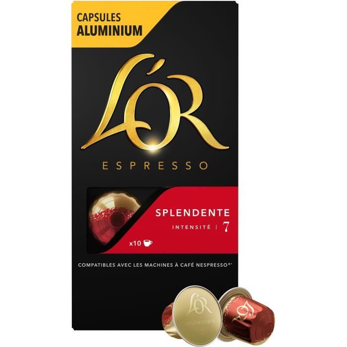 Avertissement De Sûreté Conserver dans un endroit frais et sec, à l'abri de la lumière du soleil et de la chaleur. Café Royal Café Capsules Nespresso Ristretto Intensité 9, 18 capsules Le café en capsules Espresso Barista est puissant et corsé dès la première gorgée grâce à la torréfaction foncée des grains de Robusta et Arabica. Les capsules conservent et libèrent un goût puissant et inimitable Cafe Lor Capsule Splendid Caffè Espresso Ristretto Capsules Made Of Aluminium Capsules L'or Intensité 7, ce mélange Arabica et Robusta offre des arômes riches de noisette, relevés par des notes acidulées d'agrumes et de noix. Chaque tasse est couronnée...