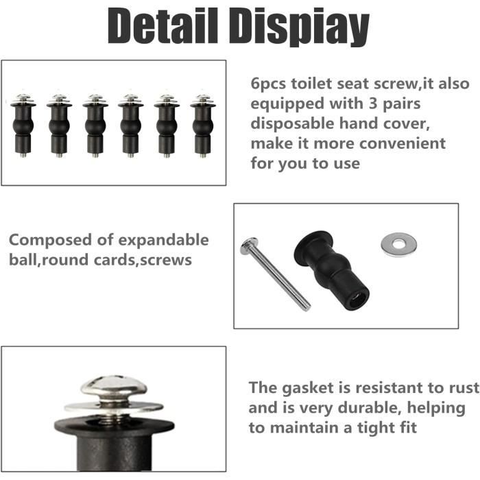 Installation facile et sûre: Le joint en caoutchouc a une section filetée qui peut être facilement insérée dans le trou en haut de la cuvette des toilettes,créant ainsi un joint ferme lors du serrage des vis. Trsnzul Abattant WC Fixations 6 Pièces Abattant WC Fixations Matériel] Les vis et les fixations du siège de toilette sont en caoutchouc et en acier inoxydable de haute qualité, qui sont solides, antirouille et résistants à la corrosion, offrant une résistance et une durabilité élevées.