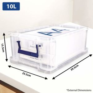 Peuvent être utilisées pour stocker des jouets, des livres, des collations, des médicaments, des serviettes, des travaux manuels et plus encore. Lot de 5 boîtes de rangement en plastique transparent, 5 tailles différentes, contenants organisateurs -poussière et -humidité avec couvercles rabattables pour fournitures scolaires, bijoux, rangement Dimensions : 32 x 23,5 x 20 cm Rangement Hermétique Boîte De Rangement Transparente Avec Couvercle Noir 24 L - Mr.Bricolage Maroc Boite De Rangement 10 Litres Avec couvercle et poignée, la boîte est empilable et facile à transporter Ces boîtes SmartStore, c'est la solution pour enfin ranger ton bordel ! Transparentes, solides et empilables, elles s'adaptent à tous tes besoins... Idéal pour une utilisation dans une chambre d'enfant, une chambre, une cuisine, un salon, un bureau, un dortoir, etc. Lot de 4 boîtes de rangement transparentes de 10 litres avec couvercles et poignées Idéale pour une utilisation dans une chambre d'enfant, une chambre, une cuisine, un salon, un bureau, un dortoir, etc.