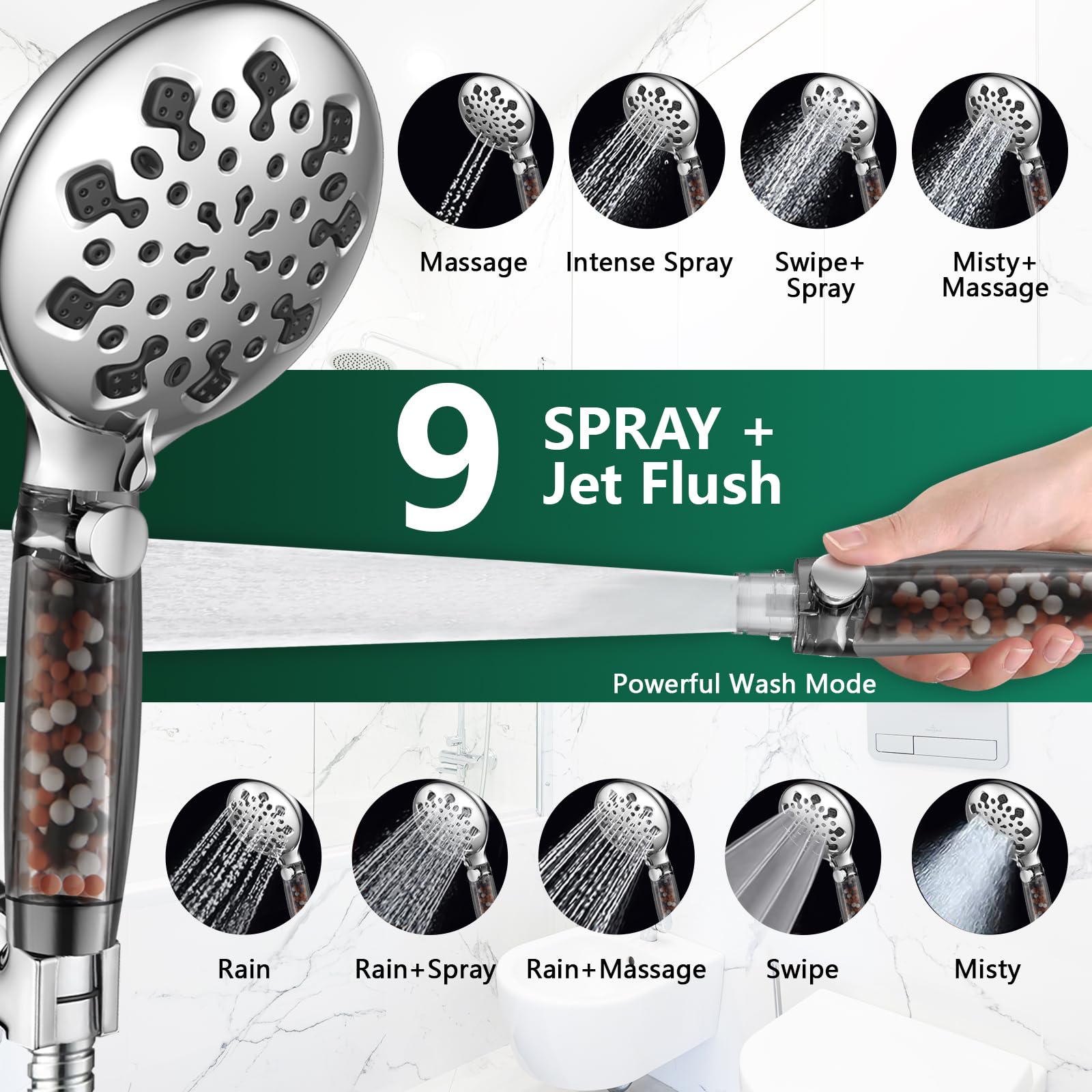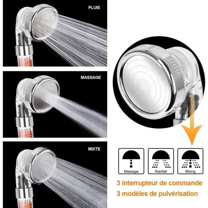 Haute qualité et anti-fuite : notre pommeau de douche à main est fabriqué en matériau ABS de qualité supérieure, bien construit, finition chromée, processus de... 1., Pommeau de douche haute pression : structure unique pour augmenter la pression. Économie d'eau et haute pression : le pommeau de douche est conçu avec une micro technologie et équipé de 150 trous de sortie d'eau fins et denses pour rendre le débit d'eau plus fin et plus grand, ce qui peut économiser 30 % d'eau que le pommeau de douche traditionnel, et fournir un puissant spray pour un massage soulageant la fatigue. Gaqring Douche - Pommeau de Douche à Haute Pression - Eau Dure Haute Pression 3 Modes de Douchette Pierre Pommeau De Douche, Filtration Ionique Haute Pression à 3 Filtre Pommeau De Douche Extérieur Installation facile : notre kit de pommeau de douche et tuyau de douche est livré avec une interface de filetage universelle G1/2., Ce qui vous permet de l'installer ou de le retirer vous-même sans avoir besoin d'un plombier professionnel. Remarque : notre pommeau de douche n'est pas compatible avec les radiateurs électriques. L'extension de tuyau est très flexible, ce qui le rend facile à installer. Le bouton « stop » vous permet d'allumer/éteindre l'eau chaque fois que vous êtes sous la douche. Mode de pulvérisation multiple et interrupteur marche/arrêt : notre pommeau de douche amovible est conçu avec 4 réglages de pulvérisation pratiques : mode pluie intégrale, mode mixte puissant, mode de massage par pulvérisation et mode de lavage puissant. Cozy Shower System] Les têtes de douche filtrantes Combo sont composées d'ABS de haute qualité et plaquées de chrome. Le débit d'eau maximum est de 2,5 gallons (9,5 litres) par minute. Le filtre de pomme de douche remplaçable pour eau dure vous étonnera par le dernier design et la technologie de filtration d'eau de la douche.! Nouveau système de filtration amélioré 15 couches de... Les rondelles semblent créer une bonne étanchéité, éliminant les soucis concernant les fuites.