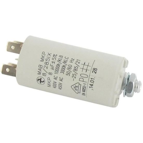 Condensateur 8 uF pour Moteur Monophasé - Utilisation pour Kärcher, Pompe de Piscine, Porte de Garage - 425V/450V/475V - Condensateur de Démarrage/Permanent avec Câble Améliorer l'allumage : Le condensateur aide à stabiliser l'allumage en stockant temporairement de l'énergie électrique. Lors du démarrage du moteur, il libère cette énergie pour aider à créer une étincelle plus forte à la bougie, ce qui permet un démarrage plus facile et plus rapide, surtout à bas régime Condensateur Tondeuse Leroy Merlin Condensateur électrique UNIVERSEL 8 UF - Pièces Détachées Condensateur Universel 400 450v Réf. : CE-UNIV-8UF. Condensateur électrique UNIVERSEL 8 UF. 4,25 €. Ou payer en. Le montant total de votre commande doit être compris entre 100€ et 3000... Pour cela, vous couperez les fils au ras de l'ancien condensateur, puis vous dénudez les fils sur 1 cm.Condensateur (permanent ou 124746352609