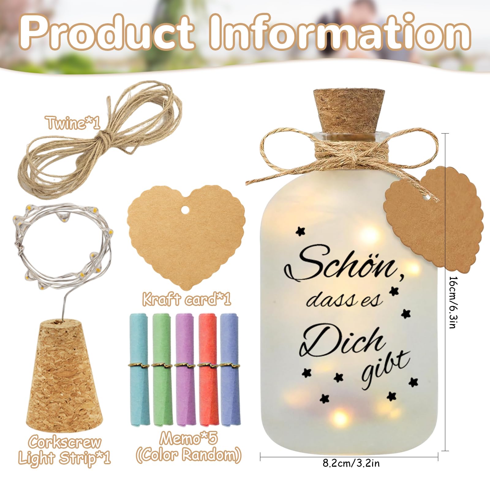 💟 Coffret cadeau exquis : le coffret vous offre une bouteille lumineuse en verre sablé avec l'inscription Mr., & Mrs. litogo Lot de 18 de Guirlande Bouteille, Lape Led Bouteille 2 20 LEDs... Veuillez tenir notre produit hors de portée des enfants. Bouteille Lumineuse Chez Amazon Bouteille Lumineuse LED Pour Mariage, Cadeaux En Argent, Cadeaux De Mariage, Cadeaux De Mariage Pour Couple De Mariés, Tirelire De Mariage, Idée Cadeau, Bouteille Lumineuse Pour Couple De Jeunes Lampadaire Bouteille Lumineuse - Il y a un risque d'enroulement. LED Bouteille Lumineuse Mariage, LED Bouteille Lumineuse Cadeaux d'Argent Mariage Emballages, Bouteilles Décoratives avec Bouchon, Caisse d'Epargne Mariage Personnalisée, Cadeaux de Mariage Argent Bouteille Lumineuse pour les Mariés et les Nouveaux Amoureux (Mr & Mrs)(Heureux de T'Exister) ✨ Les bouteilles lumineuses faites à la main sont fabriquées en verre de haute qualité et équipées de LED de haute qualité qui ont une longue durée de vie. ✨ Spécifications : Matériau : -- A : Bouteille transparente+papier kraft rond+pendentif en bois+papier à lettres kraft 4 pièces+cercle en fer 50pièces+lumière de bouteille+1fil. ✨ Les bouteilles lumineuses à LED sont faciles à utiliser et peuvent être placées n'importe où dans la maison pour créer une atmosphère chaleureuse. , 1 bouteille, 1 guirlande lumineuse LED bouchon de bouteille, 5 papiers à lettres colorés(couleur aléatoire), 1 étiquette cadeau en papier kraft et 1 corde en chanvre. Cadeau unique sera une surprise pour votre amoureux, ami, collègue ou connaissance. Cadeau de mariage Cadeaux de mariage pour les jeunes mariés Argent Personnalisé Tirelire Mariage Cadeaux d'argent pour Cadeaux Pour Petite Amie Anniversaire Jeune Fille Confirmation Cadeau Personnalisé Femmes Drôle de Lumière de Bouteille Exauceur de Voeux LED Fil De Cuivre Guirlande Lumineuse avec Bouchon de Bouteille pour 💖 Amusant à réaliser soi-même : Une carte vierge est également incluse, sur laquelle vous pouvez écrire quelque chose qui vous plaît, puis l'attacher à la bouteille avec la guirlande lumineuse. 💝Ambiance romantique : la lumière chaude réchauffera votre fête et la lumière illuminera le texte sur la bouteille, créant une atmosphère romantique et confortable. ZEYXINH 12 pièces LED Bouteille Guirlande, Guirlande Luineuse, 2 20... 💟 Coffret cadeau exquis : le coffret vous offre une bouteille lumineuse en verre sablé avec l'inscription Heureux de t'avoir ! 💖 Bouteille éclairée de haute qualité : Bouteille éclairée de haute qualité, gravure laser précise, lumières de fée LED utilisables de manière flexible pour une mise en forme facile dans les formes souhaitées. Parfaits pour les couples chauds, les jeunes mariés et les couples mariés. La bouteille en verre avec guirlande lumineuse est parfaite pour la table, la chambre, le salon, la terrasse, Noël, le Nouvel An et autres décorations de fêtes.