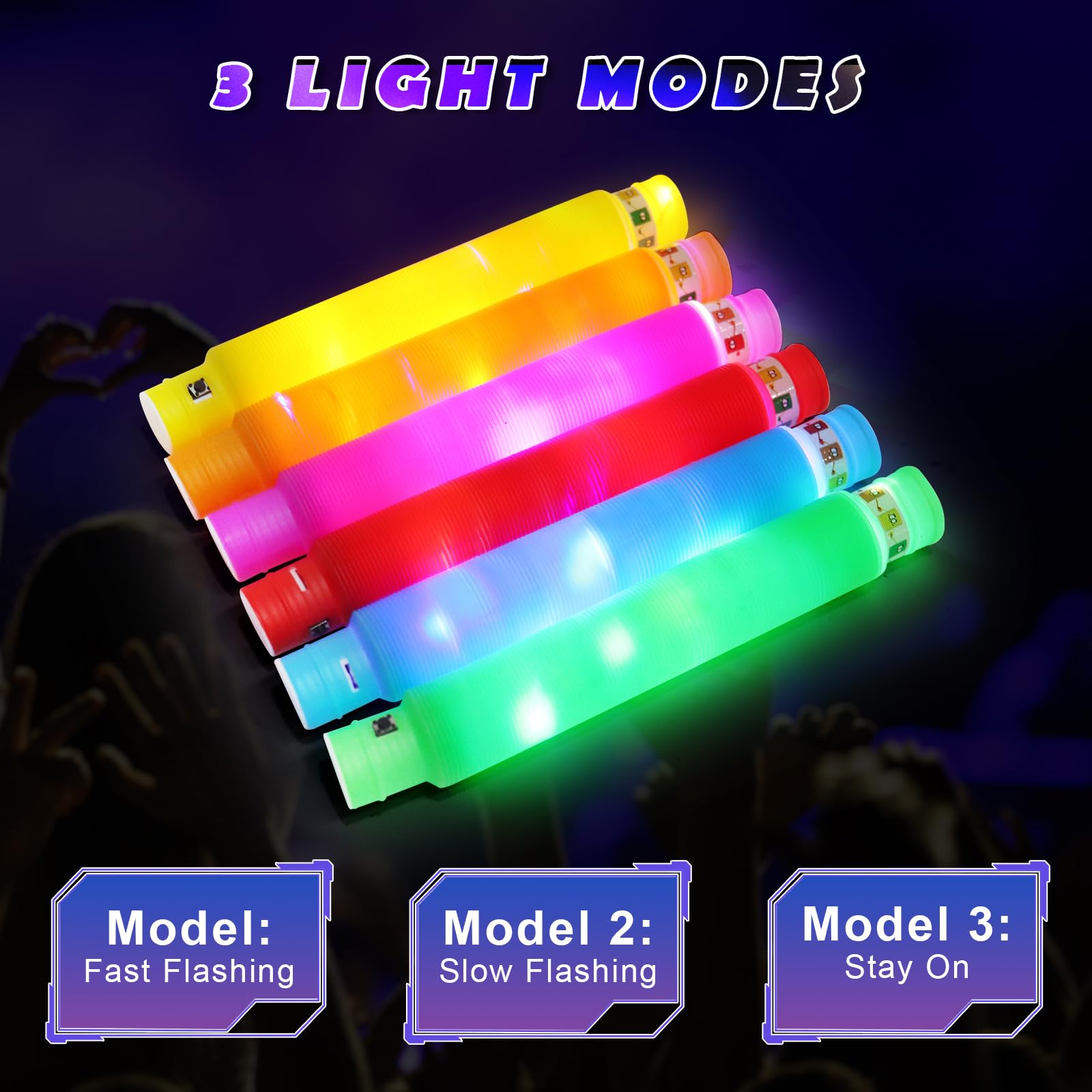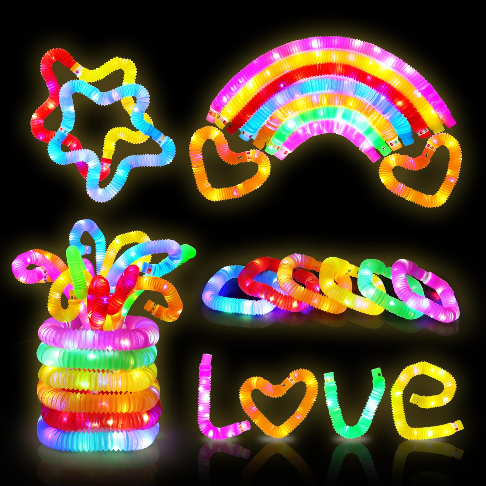 Jouets fidget DIY : les enfants peuvent étirer, plier, tourner, connecter et briller ces jouets LED pour former différents chiffres, lettres, voitures, arbres... 🌟 【Cadeau de tubes pop LED 2024】 Ce nouveau jouet lumineux combine le petit tube à outils rétractable classique avec des lumières LED lumineuses et colorées. La taille est de 20*2,5 cm et la longueur peut être étirée jusqu'à 65 cm. O-Kinee Moule à Glace sans BPA, Moulle Esquimaux Silicone, Moule a Bracelet Fluorescent Lumineux Lot De 12 - Tubes Pop Fidget Toys - Pour Fête, Anniversaire Baton Lumineux Fluorescent Il dispose de 3 modes d'éclairage : toujours allumé, clignotant et clignotant alterné. 🌟【Service client】Si vous avez des questions après avoir reçu nos produits, veuillez nous contacter par e-mail à temps et nous le résoudrons dans les plus brefs délais. Vous pouvez basculer entre différents modes à l'aide du bouton bascule. 🌟【Décoration de fête】Nos tubes pop LED peuvent être utilisés pour les fournitures de fête, les carnavals, les mariages, le camping en plein air, les voyages longue distance, les prix, les cadeaux d'événements, etc. Conception légère, facile à transporter, peut être utilisée comme jouet en voyage. Ce lot de 12 bracelets fluorescents en forme de pop tubes est ultra fun - ils s'allument et se tordent dans tous les sens. Idéaux pour les anniversaires, les... 🌟【Matériau】 Le tube lumineux LED est fabriqué en plastique de haute qualité et peut résister à une super élasticité.