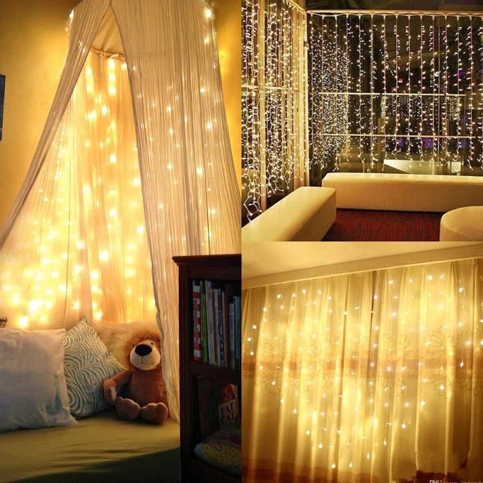 régler la luminosité,régler la minuterie automatiquementpeut durer 6 heures, puis s'éteindre pendant 18 heures. Guirlande Rideau Amzeeniu Rideau Lumineux,3m*3m Guirlande Lumineuse Rideau USB 300 LEDs Rideau Guirlande Lumineuse murs et même parfait pour envelopper un lit à baldaquin ou une pergola dans le jardin. ✨ Rideau Lumineux idéale pour la décoration intérieure et extérieure, sa couleur chaude vous apporte, à vous ✨ Rideau Lumineux idéale pour la décoration intérieure et extérieure, sa couleur chaude vous apporte, à vous et à vos amis, une famille avec une atmosphère merveilleuse, ✨ Très flexible Nous fournissons 10 crochets pour la guirlande lumineuse. Rideau Lumineux 3M X 3M - 300 Leds Usb Guirlande Rideau Lumineuse Avec... 🌈⭐⭐【Large champ d'application】Nous fournissons 10 crochets pour la Guirlande Lumineuse Rideau pour DecorationNoël, Mariage, Anniversaire, Fenêtre, Maison, Patio,Chambre à coucher, Fête. 🌈⭐⭐【Rideau Lumineux】Tri de quatre sortes couleurs,rouge,vert,jaune,bleu Donne des couleurs vives à l'intérieur,Nous vous offrons un manuel d'utilisation, Fil de cuivre avec des lumières de rideau,portable,Faible consommation d'énergie,difficile à générer de la chaleur, Flexible et facile à ranger. 6€ Vleuexe Rideau Luineux,3*3 Guirlande Luineuse Rideau USB 300 LEDs 8 odes d'Eclairage Télécoande inuterie Luinosité Réglable, Decoration de Fenêtre... ✨ REMARQUE: En raison des différents moniteurs, il peut y avoir une différence de couleur lors de l'utilisation à l'extérieur, veuillez protéger la prise USB de l'eau. Il suffit d'accrocher les crochets prévus dans la tringle à rideaux et la lumière du rideau est déjà fixée. GUIRLANDE LUMINEUSE,Multicolor-3m X 3m--Guirlande lumineuse pour rideau ✨ Convient pour le rideau ou le mur de 3 m de long et 3 m de large. ⭐ Veuillez essayer de changer les piles si la télécommande ne fonctionne pas. ⭐ Veuillez retirer le plastique de la batterie de la télécommande avant de l'utiliser. 🌈【Taille】Rideau Lumineux mesure 3m*3m de long,et est disposé à une distance d'environ 30 cm. 8 modes d'éclairage : Combinaison, en vagues, séquentielle, slogs, poursuite / flash, fondu lent, twinkle / flash, et continu.