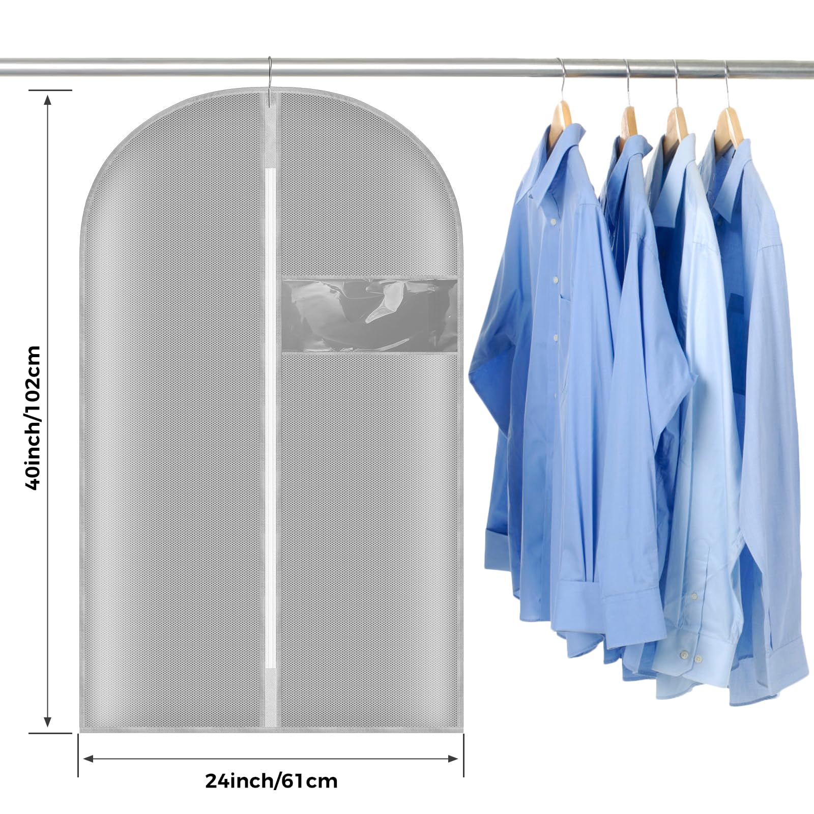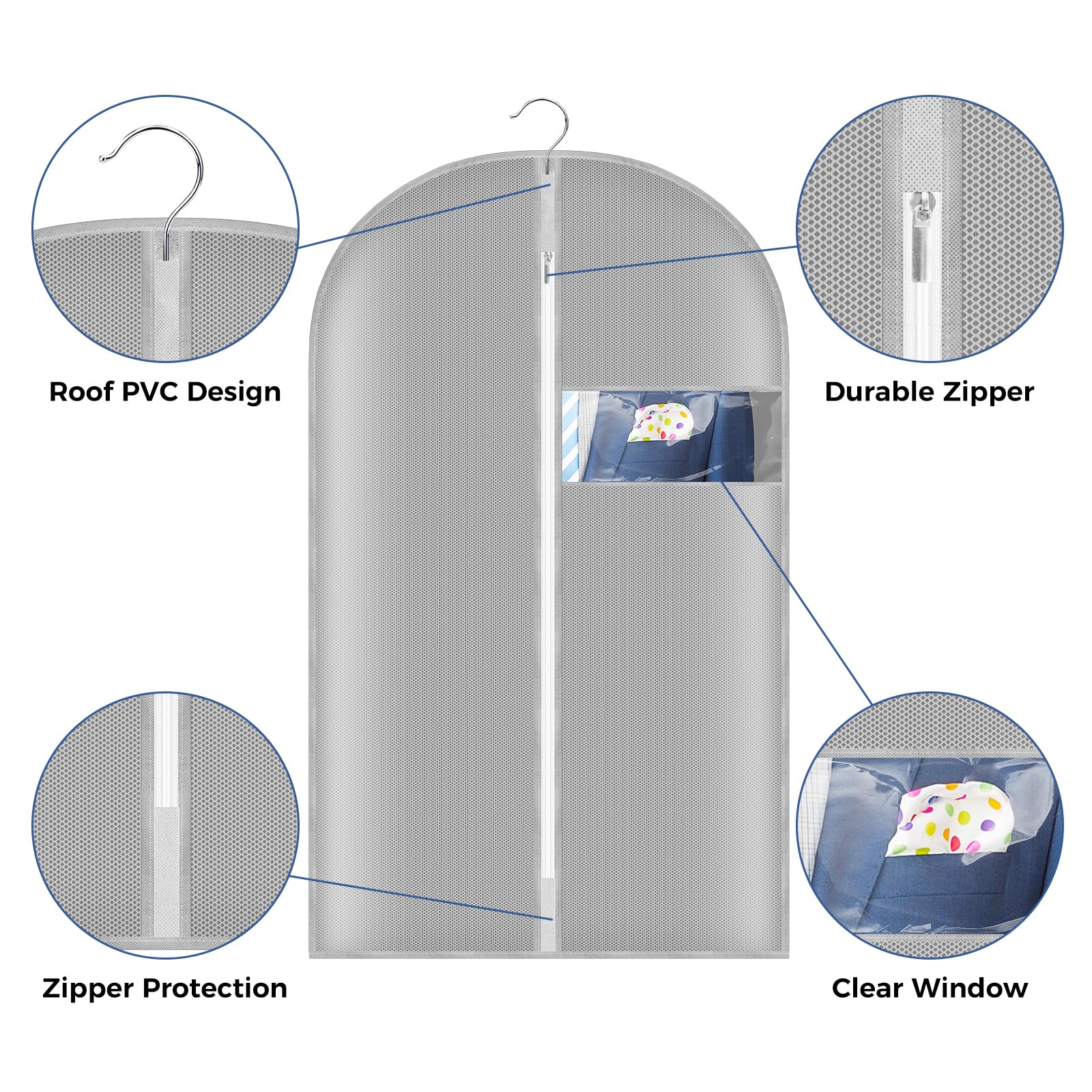 L'œillet en métal durable permet aux cintres de passer à travers pour un transport facile. Syeeiex Lot De 5 Sacs à Vêtements De 101,6 Cm Avec Fenêtre ✓ Matériau : tissu non tissé., ✓ Dimensions : 61 x 101,6 cm. ✓ Garde les vêtements frais, sans plis. Imperméable, sans poussière, lavable, réutilisable, respirant et durable.Fabriqué en matériau PEVA. Doux, léger et facile à plier pour économiser de l'espace de... Les sacs de costume pour homme aident à garder les vêtements hors saison propres et sans plis. Fenêtre transparente : les sacs pour homme avec fenêtre transparente peuvent rapidement organiser/choisir les bons vêtements et un porte-carte d'identité en plastique PVC du sac à vêtements pour s'adapter à une étiquette de nom ou d'identification. Fermeture éclair durable et lisse : les sacs de costume pour le rangement de placard qui, en combinaison avec la fermeture éclair robuste sur toute la longueur, vous permettent de ranger facilement et en toute sécurité vos vestes, manteaux et robes. Le sac à vêtements pour homme est parfait pour tous vos...Fenêtre transparente – Facile à reconnaître ✓ Housses de costume de 12,7 x 101,6 cm., Tissu non tissé ✓ Parfait pour les costumes, vestes, chemises, pantalons, fourrures, manteaux de sport d'hiver, robes, robes longues, etc. Syeeiex Lot de 8 sacs de costume de 101,6 cm pour suspendre Généralités : ✓ Type : sac à vêtements en tissu. Respirant et garde vos articles exempts d'étouffement. Sac de costume de haute qualité : ces sacs à vêtements pour suspendre des vêtements sont fabriqués en tissu non tissé respirant de haute qualité. Avec clip de fermeture éclair pour éviter que la fermeture éclair ne glisse, vous n'avez plus à vous soucier que la fermeture éclair se détache. Rangement facile : les sacs de voyage pour homme peuvent être pliés facilement dans une petite taille, très faciles à ranger lorsque vous ne les utilisez pas, économisez beaucoup d'espace.
