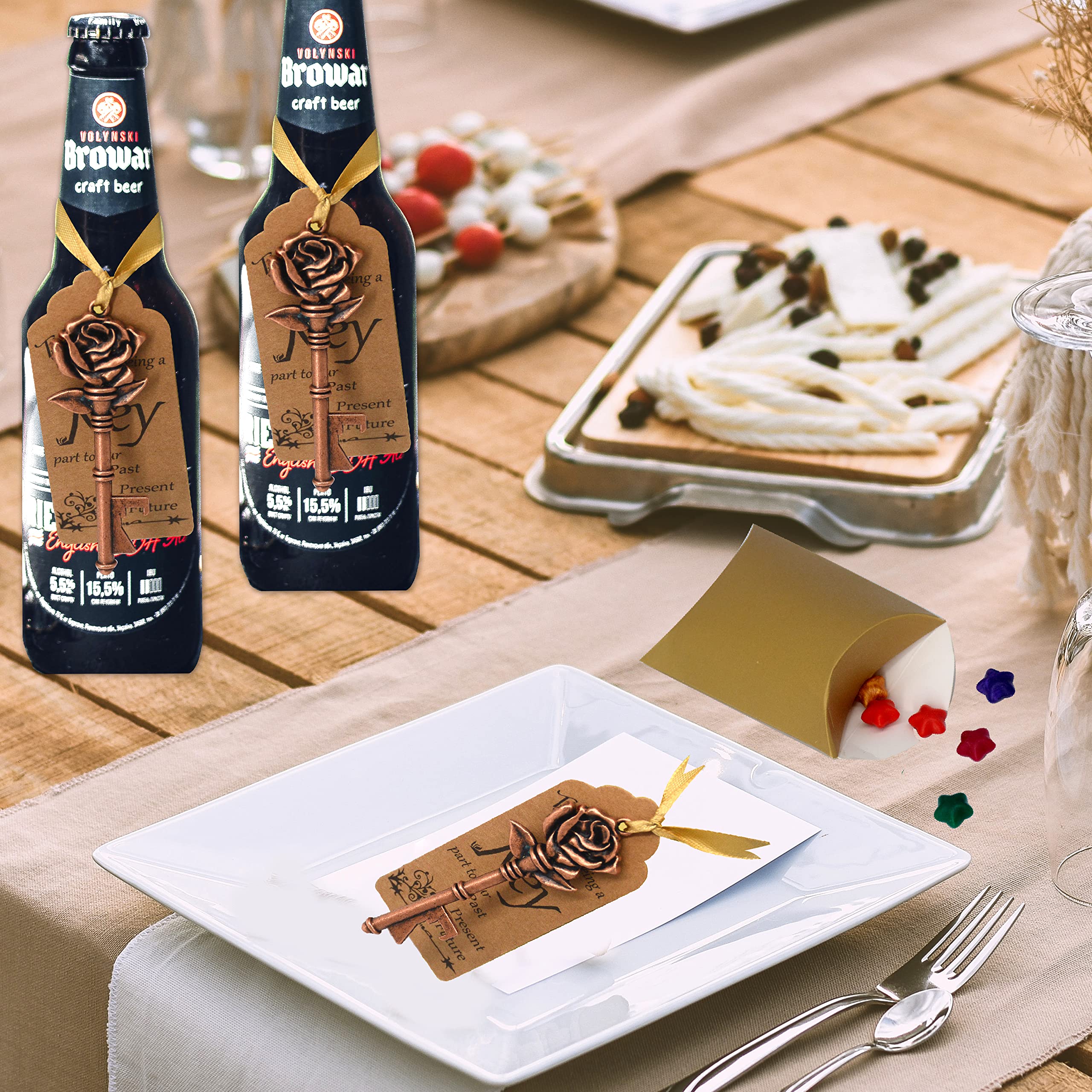 Rendez votre fête unique et impressionnante., Ouvre-clé antique. Cadeau spécial : ils sont parfaits pour les mariages, les anniversaires, les enterrements de vie de jeune fille, les fêtes prénatales, etc. · Tout en un C'est également un outil quotidien nécessaire dans la cuisine ou le bar et pratique à transporter. Alimitopia Lot De 50 Décapsuleurs à Clé Double Cœur Pour Fête Sans plomb, sans décoloration et respectueux de l'environnement. Contenu de l'emballage : 50 décapsuleurs en bronze, 50 étiquettes en kraft, 50 cordes de chanvre, 50 sacs cadeaux avec cordon de serrage... Lot de 50 décapsuleurs en forme de clé squelette avec Matériau de qualité : ces clés sont fabriquées en alliage robuste avec traitement de placage. Il s'adapte à votre mariage vintage et rustique ou autres fêtes.