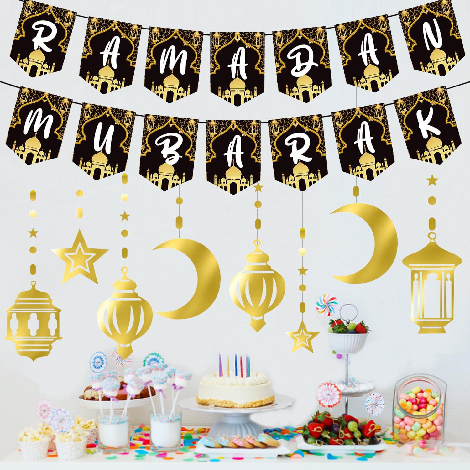 【Le paquet contient】- Contient 1 pièce de fond de Ramadan Mubarak qui mesure environ 180*110cm, 1 fanion de Ramadan, 6 vertèbres suspendues. Que ce soit pour un panneau de bienvenue ou une décoration de ramadan, il répondra à tous vos besoins en matière de photos avec une grande facilité. Que vous fêtiez à l'intérieur ou à l'extérieur, elle sert de décor idéal pour les cabines photo. Aïd Mubarak, Bannière de Décorations Ramadan Fonctionnalités : - Élément musulman design - Bénédictions, étoiles, lune, lampes, silhouette d'une mosquée - Fabriqué en tissu de haute qualité, durable, robuste, sûr - Design peu encombrant, facile à utiliser et à ranger Spécification : Matériau : alliage Polyester + carton Dimensions de la bannière 180 x 110 cm Couleur : noir Contenu de la livraison : 1 bannière Ramadan 1 fanion Ramadan 6 émerillons suspendus 4 crochets 2 cordes (blanc et noir) Il est parfait pour décorer votre maison à l'approche du Ramadan Moubarak. La bannière de fête musulmane mesure 180 x 115 cm, est très adaptée pour les décorations de fête musulmane du Ramadan Décoration du Ramadan : vous recevrez 1... 【Facile à utiliser】- Il y a 4 trous dans le coin de la bannière Ramadan Moubarak. Le fanion d'accompagnement et la spirale suspendue sont soigneusement fabriqués à partir de cardstock solide. L'ensemble avec un mélange captivant d'éléments tels que les bénédictions, les étoiles, la lune, les lanternes illuminées et la silhouette d'une mosquée dans la nuit calme. Les détails captivants et les couleurs vives feront briller l'ambiance de votre fête et laisseront une impression durable à vos invités. AZMUT vous souhate Aïd Moubarak, melleurs vœux de santé et de... Banderole Eid Mubarak Decoration Ramadan Bannière 2024, Toile De Fond Eid Mubarak Noire Et Banniere Aid Moubarak 【Thème du Ramadan】- Améliorez l'ambiance de l'Aïd avec cette bannière d'arrière-plan musulmane du Ramadan.