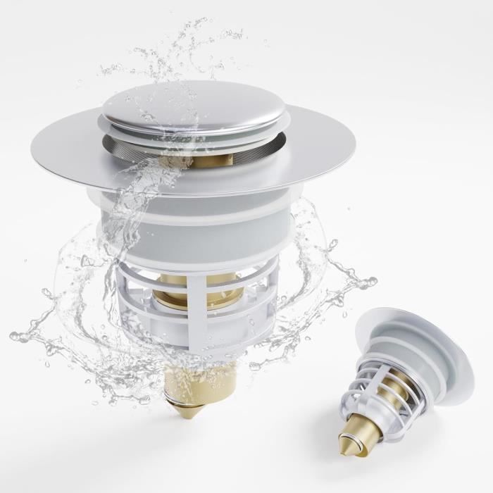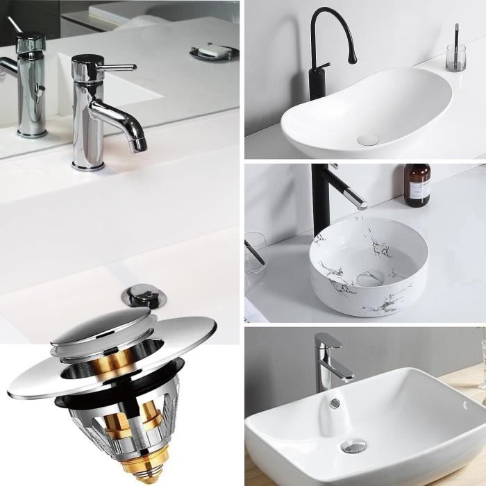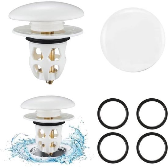 Bonde de lavabo universelle Pop Up pour bonde de lavabo de 34 à 40 mm Bouchon de lavabo 2 en 1 amélioré : le bouchon de lavabo pop-up est équipé d'un panier anti-obstruction qui est un bouchon et une passoire en un. Ce design retient l'eau et empêche les blocages en recueillant les objets précieux tels que les cheveux, la saleté et les bagues avant qu'ils ne pénètrent dans le drain. Le tamis amovible offre un espace supplémentaire pour récupérer les... Matériaux de qualité supérieure : le bouchon d'évier pop-up est fabriqué en acier inoxydable robuste et en laiton. Bouchon Lavabo Universel Bouchon De Lavabo Universel Pop Up Avec Tamis Anti-clogging (32 à 42 Mm Filtre Lavabo Facile à nettoyer : il suffit d'appuyer sur le filtre amovible pour le retirer, de le nettoyer de la balance, de le rincer et de le réutiliser. diamètre 34-38mm Bouchon lavabo, bonde de lavabo Anti-Odeur Universel... Lot De 2 Filtres De Vidange De Lavabo - 34 à 40 Mm - Universel - Pop Up Avec Tamis A Cheveux Pour Bouchon De Baignoire Lavabo A Poser 87699905 Drainage fluide : le filtre à eaux usées pop-up a une forme poreuse en nid d'abeille et est assez profond pour un drainage efficace et sans entrave. Contenu de l'emballage : vous recevrez 1 vanne de vidange à filtre pop-up, adaptée aux ouvertures de canaux d'une largeur de 33 à 35 mm et d'une profondeur supérieure à 80 mm.
