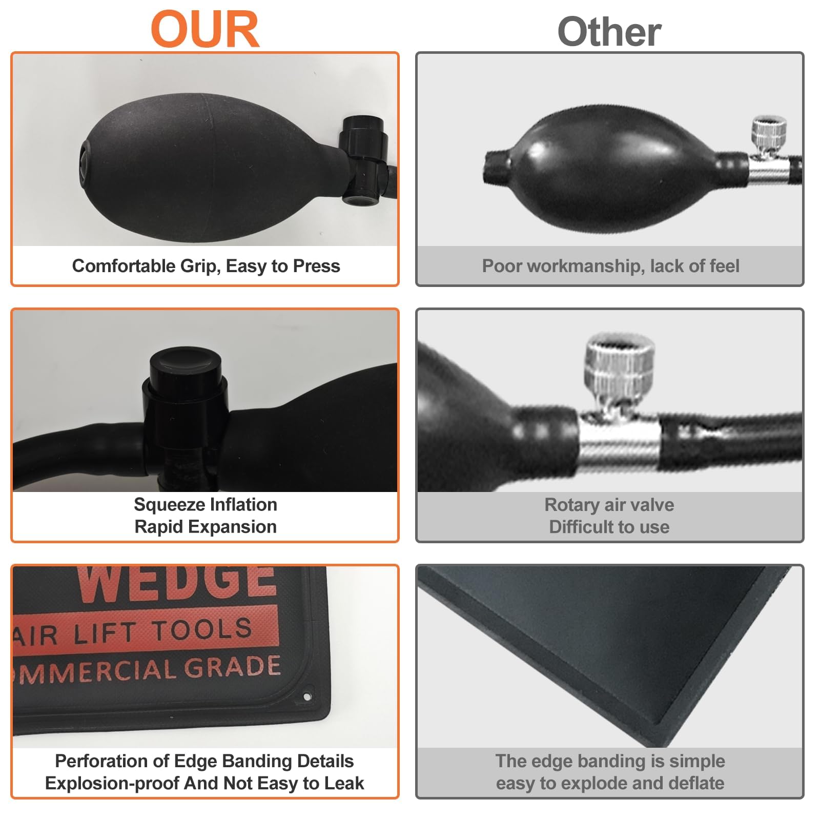 Pelesaurea Air Wedge Bag Kit de nivellement de pompe à air professionnel Produit de qualité supérieure, facile à utiliser, très utile. Amélioration des accessoires : le lot de cales de pompe comprend 2 outils de cale (L : 28,4 x 12,7 cm + M : 15,2 x 16 cm) + 4 outils de levier de taille, économisez du temps et des efforts. SOUTH SILK Kit De Nivellement Professionnel De Qualité Commerciale Et Sac De Cale Gonflable, Capacité De 200 Kg, Tuyau Long De 50 Cm, Grande Taille, Lot De 2 Des chaussures aux vêtements, des tenues de sport aux accessoires. KEENSO cale de porte gonflable Pompe de Cale D'air, Sac de Cale Gonflable à Positionnement... Nombreuses utilisations : le sac de cric gonflable peut être utilisé pour les poutres, les armoires, les portes, le matériel, les meubles, le chauffage, la climatisation, la plomberie, les solives, les comptoirs, les cheminées, les luminaires de salle de bain, les brides de rideaux et les fenêtres. Cale à air pompe automobile cale Air Gap voiture entrée outil kit de levier de levier et outil... Si vous avez des questions avec notre cale gonflable, n'hésitez pas à nous contacter. Service : nous pouvons vous offrir des outils professionnels. Pour 2015-2017 F-150 Kit de Nivellement de Suspension Air Lift-RWD