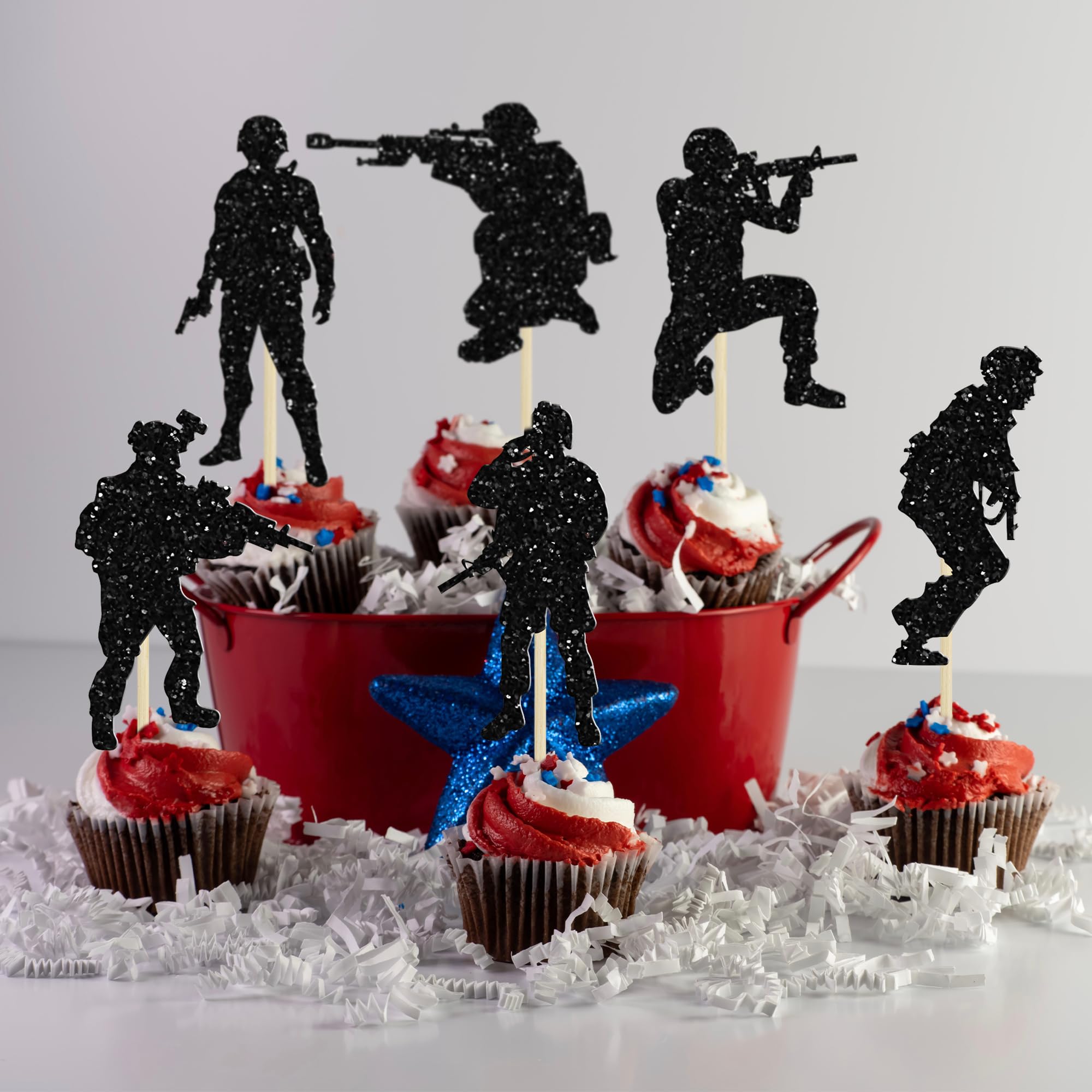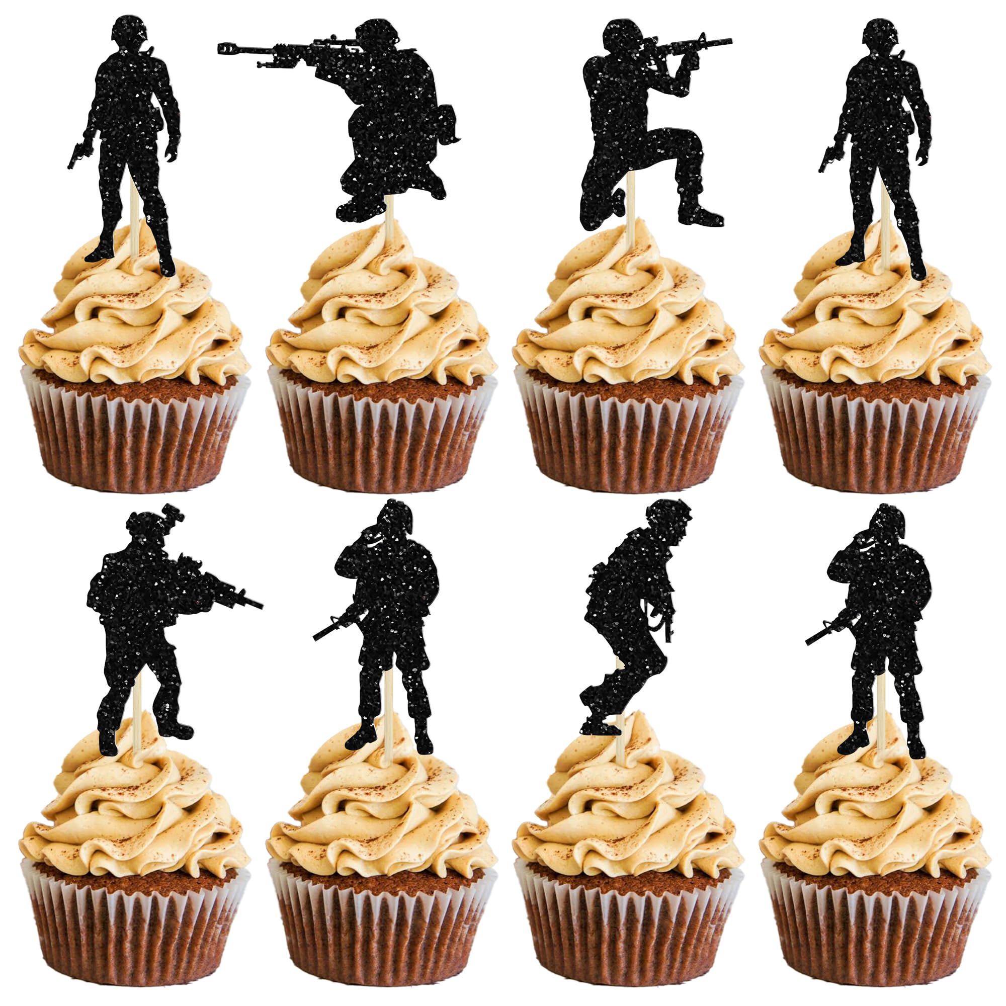 Xsstarmi Lot De 24 Décorations De Cupcakes Soldat Militaire à Caractéristiques : - Contenu : lot de 24 pièces. Livré avec assemblé, de sorte que vous pouvez l'insérer directement dans votre gâteau, ce qui rend votre gâteau plus intéressant. Uniquement à des fins de décoration, ce n'est pas comestible et veuillez ne pas l'utiliser au four ou au micro-ondes. Keaziu Lot De 24 Décorations Pour Cupcakes Sur Le Thème Militaire - Contenu de l'emballage : 24 décorations de cupcakes militaires soldats. Meilleure décoration de gâteau de fête qui peut être utilisée pour les décorations de fête de l'armée et d'autres fêtes à thème similaires. - Matériau de qualité supérieure : ces décorations de cupcakes militaires à paillettes sont fabriquées en papier cartonné pailleté de 300 g de haute qualité et en cure-dents de qualité alimentaire, très sûres pour les mettre sur les gâteaux, cupcakes, crème glacée, fruits, tarte, dessert, fromage ou tout plat et apéritif alimentaire que vous voulez décorer. - Si vous souhaitez retourner l'article, veuillez nous contacter d'abord, puis nous nous occuperons jusqu'à ce que vous soyez satisfait., Remarque : 1., En raison des différences dues à l'écran et à l'éclairage, la couleur du produit peut différer légèrement de celle de l'image., 2., Les mesures étant prises à la main, les tailles indiquées peuvent varier légèrement., 3., Merci de votre compréhension et profitez de votre moment shopping. Veuillez ne pas les mettre au four car ils sont uniquement décoratifs et non comestibles. Contenu de l'emballage : 24 décorations de cupcakes militaires soldats. Livré avec assemblé, de sorte que vous pouvez l'insérer directement dans votre gâteau... Dimensions : 4 x 11 cm (l x H x H).