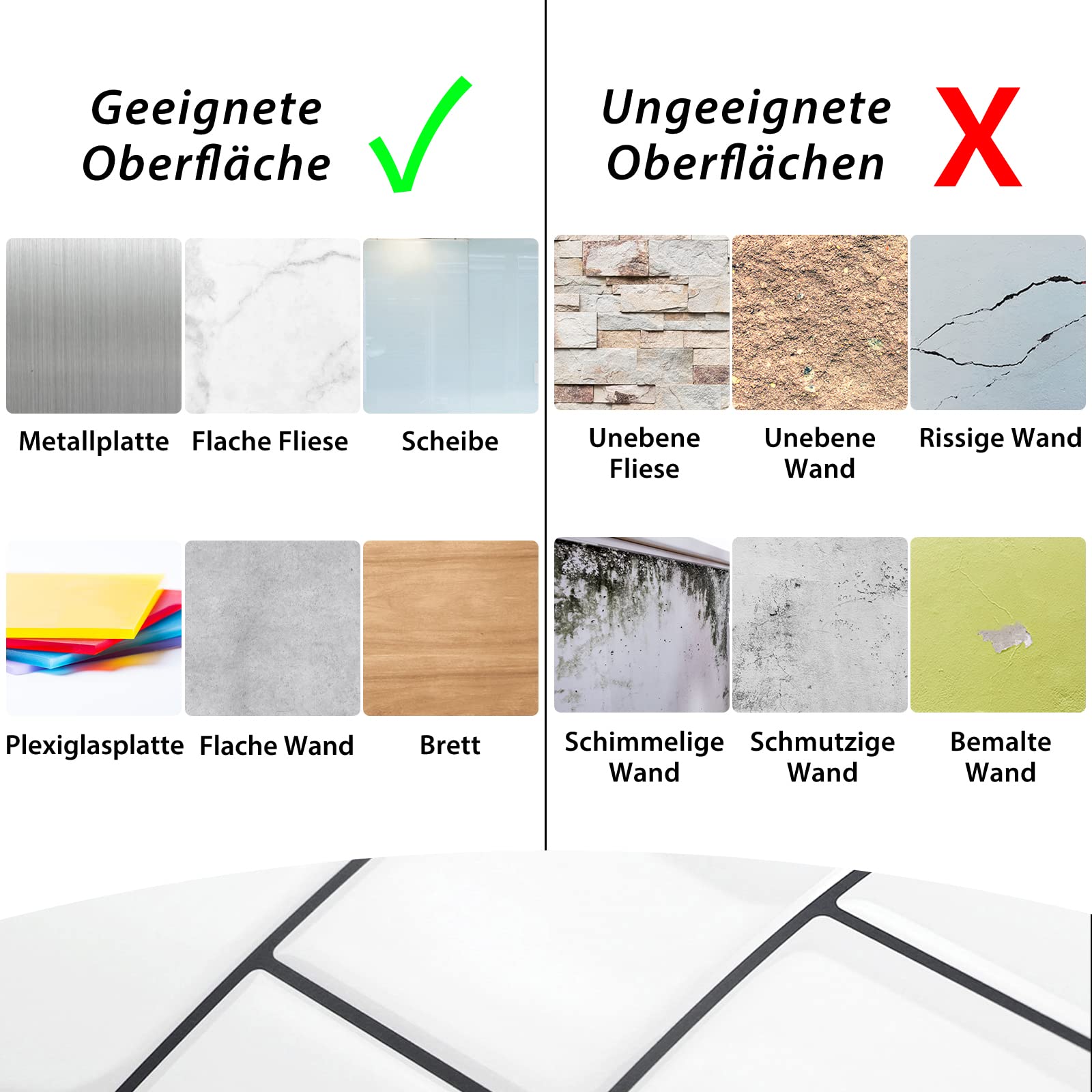 Matériau respectueux de l'environnement : matériau composite en polychlorure de vinyle, c'est un nouveau matériau décoratif respectueux de l'environnement, non toxique et inodore, sûr et fiable, adapté pour la décoration de la maison et des espaces commerciaux. 10 pcs carreaux adhésifs 3D pour cuisine et salle de bain, PVC mat étanche, 30 x... Excellente texture : le design épais de 4 mm offre une excellente texture et tridimensionnalité, améliore l'effet visuel du mur et améliore la qualité décorative générale, adapté pour les salons, chambres, bureaux et autres endroits. Contenu du paquet : 10 autocollants muraux Lot De 10 Panneaux Muraux 3d, Stickers Carrelage, Autocollants 3d Papier Peint Adhesif 30 X 30 Cm Pour Cuisine Salle De Bain 10 autocollants muraux 3D pour carrelage, autocollants Caractéristiques : Matériau : composite de chlorure de polyvinyle. Couleur : vert gazon/vert foncé/couleur chair Dimensions : 30 x 30 cm., Épaisseur : 4 mm.
