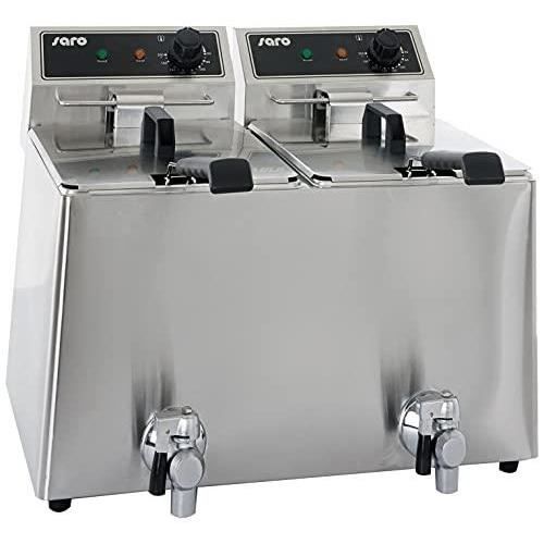 La friteuse Saro EF 8 convainc par sa construction compacte et son équipement professionnel pour un usage quotidien en entreprise de restauration. Friteuse Double - INOX - 3300W - 2x3L - Température jusqu'à 190°C - 2 Friteuse électrique 6l avec robinet vidange - GAFIC - A l'unité | GROS... Thermostat de sécurité intégré pour un fonctionnement fiable Avec sa taille compacte, la friteuse EF 8 est idéale pour les petites cuisines et une utilisation mobile. Avec une capacité de 8 l et une température allant de 60 à 200 °C, elle est idéale pour la préparation d'une grande variété d'aliments frits. Un robinet de vidange pratique favorise un nettoyage hygiénique et rapide. Cuve amovible pour un nettoyage facile Fabriquée en acier inoxydable robuste, elle dispose d'une cuve amovible avec zone froide intégrée qui assure une meilleure conservation de l'huile. Capacité de 8 l avec zone froide intégrée pour prolonger la durée de conservation de l'huile Offre Friteuse 3 L Homday chez GiFi Friteuse Inox SARO Fritteuse – 8 L – Edelstahl – Temperatur 60–200 °C – Ablasshahn – Kältezone – Herausnehmbares Heizelement – Sicherheitsthermostat – 3 KW – Modell EF 8 Friteuse Professionnelle Design compact idéal pour les petites cuisines ou les food trucks