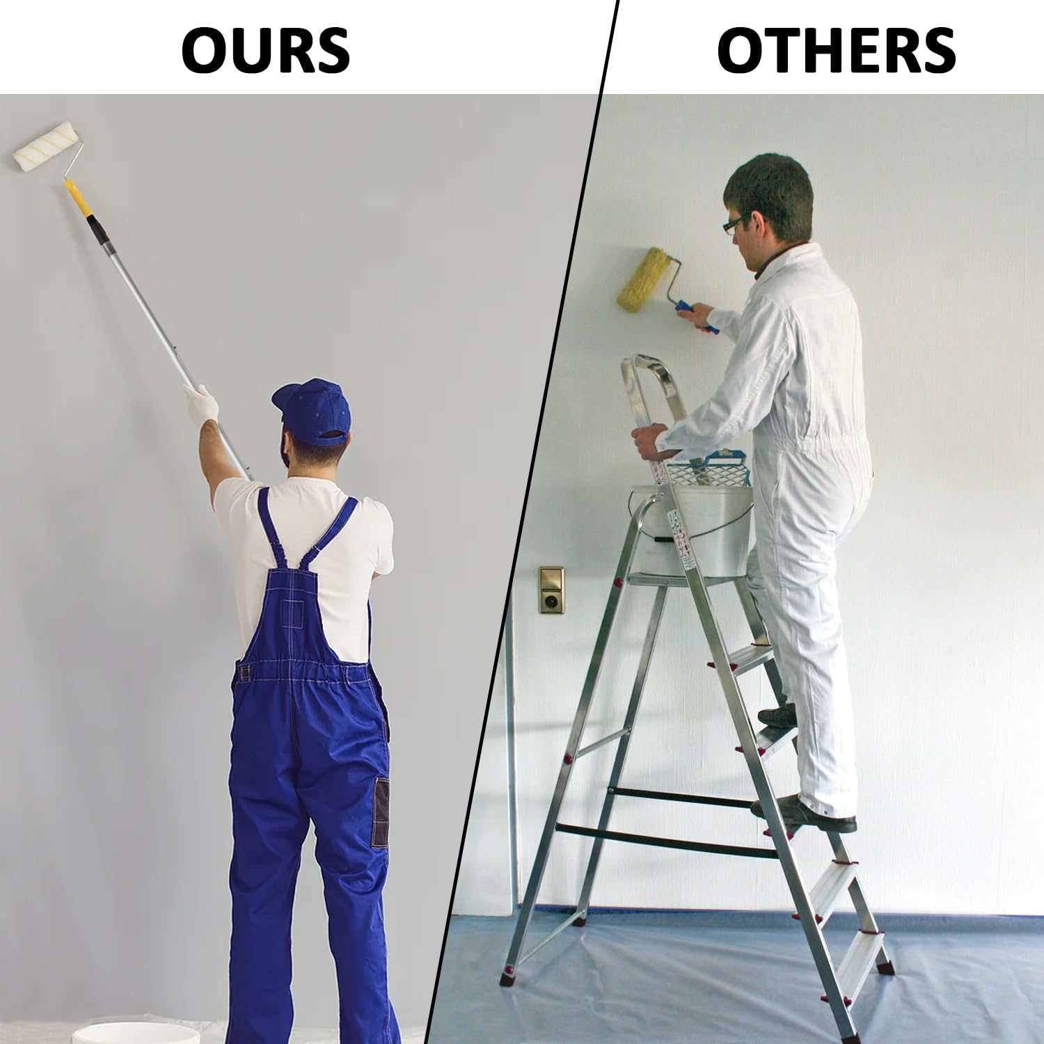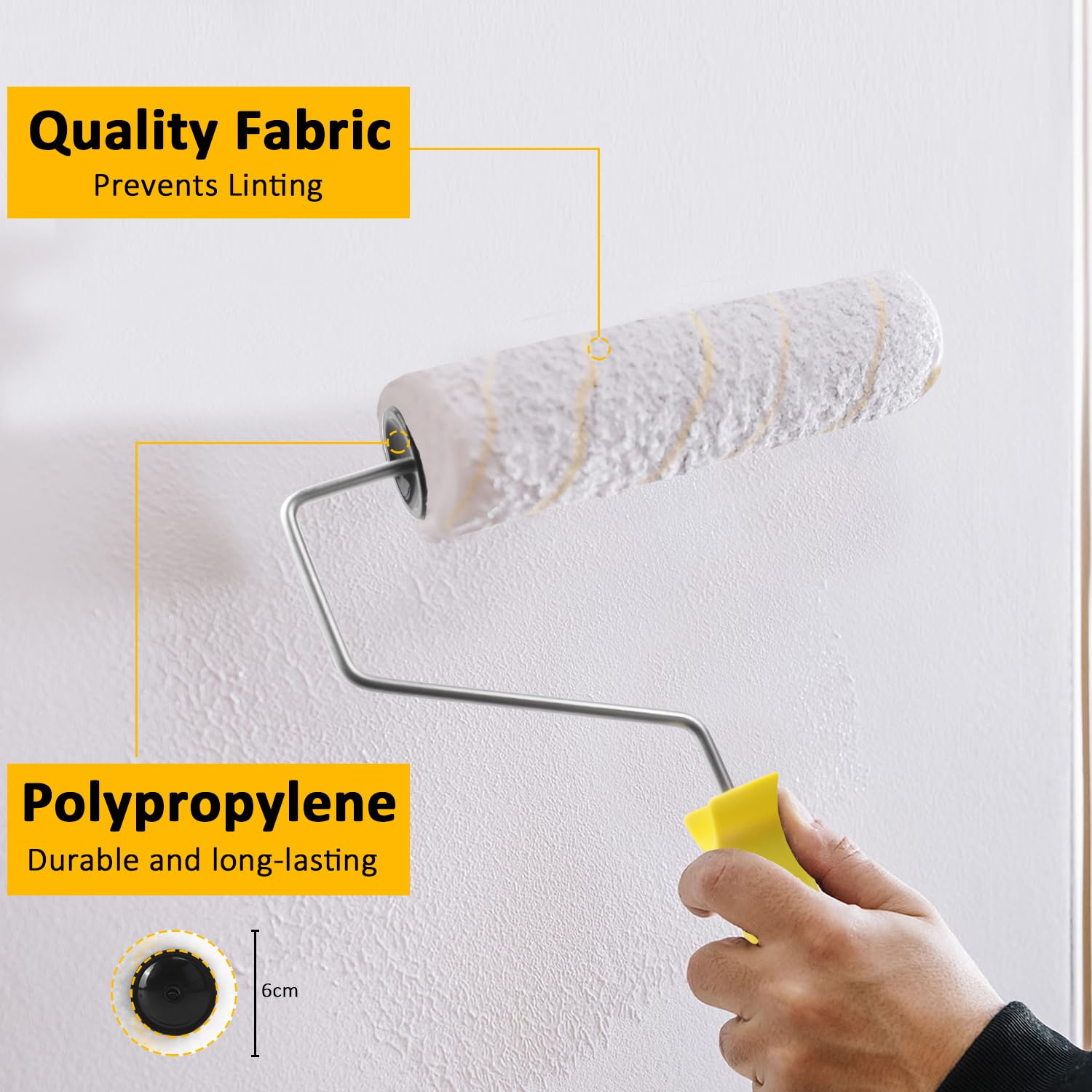 Le montage et le démontage rapides et faciles simplifient grandement le travail. Tête de brosse de haute qualité. Rouleau de peinture avec manche d'extension : équipé de six tiges de connexion robustes en acier inoxydable de 27 cm, ce rouleau de peinture mesure 1,8 m de long et durable, vous donnant un travail facile et durable. Fabriqués à partir de matériaux de qualité supérieure, les pinceaux, les rouleaux et le plateau sont lavables et réutilisables, vous aidant à économiser de l'argent tout en réduisant les déchets Rouleau de peinture avec poignée amovible en acier 6 tiges d'épissure en acier inoxydable. Longueur totale du support de rouleau de 22,9 cm : 1,8 m., Contenu : Robuste, facile à nettoyer et réutilisable : poignées confortables, réduisant la fatigue et cadres robustes facilitent les longues sessions de peinture. Caractéristiques : Les tiges légères et rétractables en acier inoxydable vous permettent d'atteindre et de peindre facilement n'importe quel plafond ou mur Que vous souhaitiez peindre des sols, des murs ou des murs plus élevés, étirez notre rallonge réglable avec facilité Il peut être peint rapidement et convient aux portes, murs, plafonds, bords, etc. Cadre du rouleau : Tiges chromées, d'une longueur d'environ 10 pouces... 2 rouleaux de peinture de 22,9 cm. Rouleau De Peinture Pour Mur Rouleau De Peinture – Rouleau De Peinture En Acier Inoxydable | Pinceau Rouleau De Peinture Portable Avec Poignée Télescopique Amovible, Fournitures De Peinture Murale Pour Plafond, Armoires De Rouleau De Peinture Pour Peinture Rouleau de peinture anti-chute de 17,8 cm : composé de filaments de fibre synthétique de haute qualité, les poils ne tombent pas et ont une texture uniforme... 4 rouleaux de peinture de 10,2 cm., 1 bac à peinture. [Tout le monde peut utiliser] Différentes tailles de rouleaux de peinture et de pinceaux sont disponibles pour différents scénarios. 1 support de rouleau de peinture de 10,2 cm. 1 support de rouleau de peinture de 22,9 cm. [Haute qualité] Le rouleau de peinture mesure 23 cm de long et a un revêtement extérieur en fibre acrylique courte de 15 mm pour une finition parfaite.