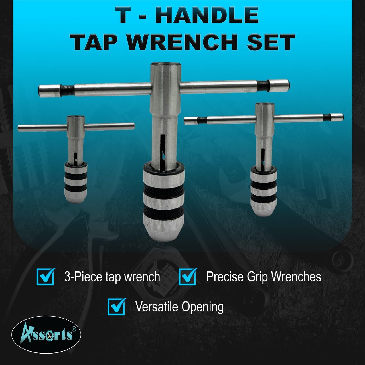Pièces non utilisées conçues pour une utilisation avec des robinets, alésoirs, extracteurs de vis et autres outils avec tige carrée Fdit Clé à taraud Ensemble de 6 tarauds à vis et clé en forme de T Kit... Clé à Cliquet à Poignée en T Argentée Longue et Réglable avec 5 Tarauds 3 différentes clés à tarauds réglables de qualité supérieure Ensemble De 7 Pièces De Tarauds à Cliquet à Poignée En T Avec Filetage Fabriqué en acier à outils, haute dureté, résistant à la rouille et à la corrosion.Ils comportent une action à cliquet avec un fonctionnement en avant et en arrière et un verrouillage.La conception moletée autour de la pointe de ces clés vous permet de desserrer et de resserrer le robinet de la clé lorsque vous avez les doigts gras.Ces clés à tarauds à cliquet de qualité... Lot de 3 clés à tarauds avec poignée en T Jeu de clés à tarauds réglables Big Horn